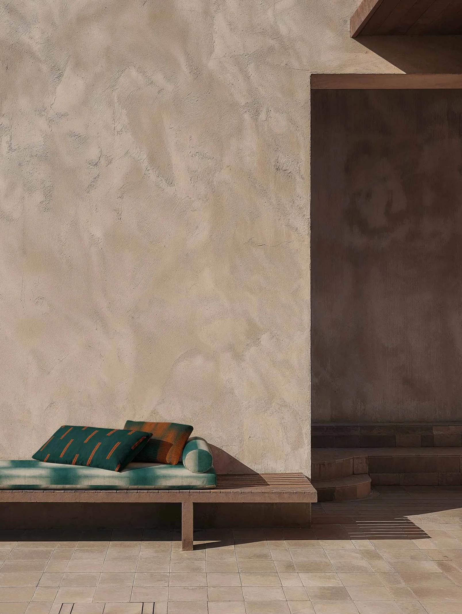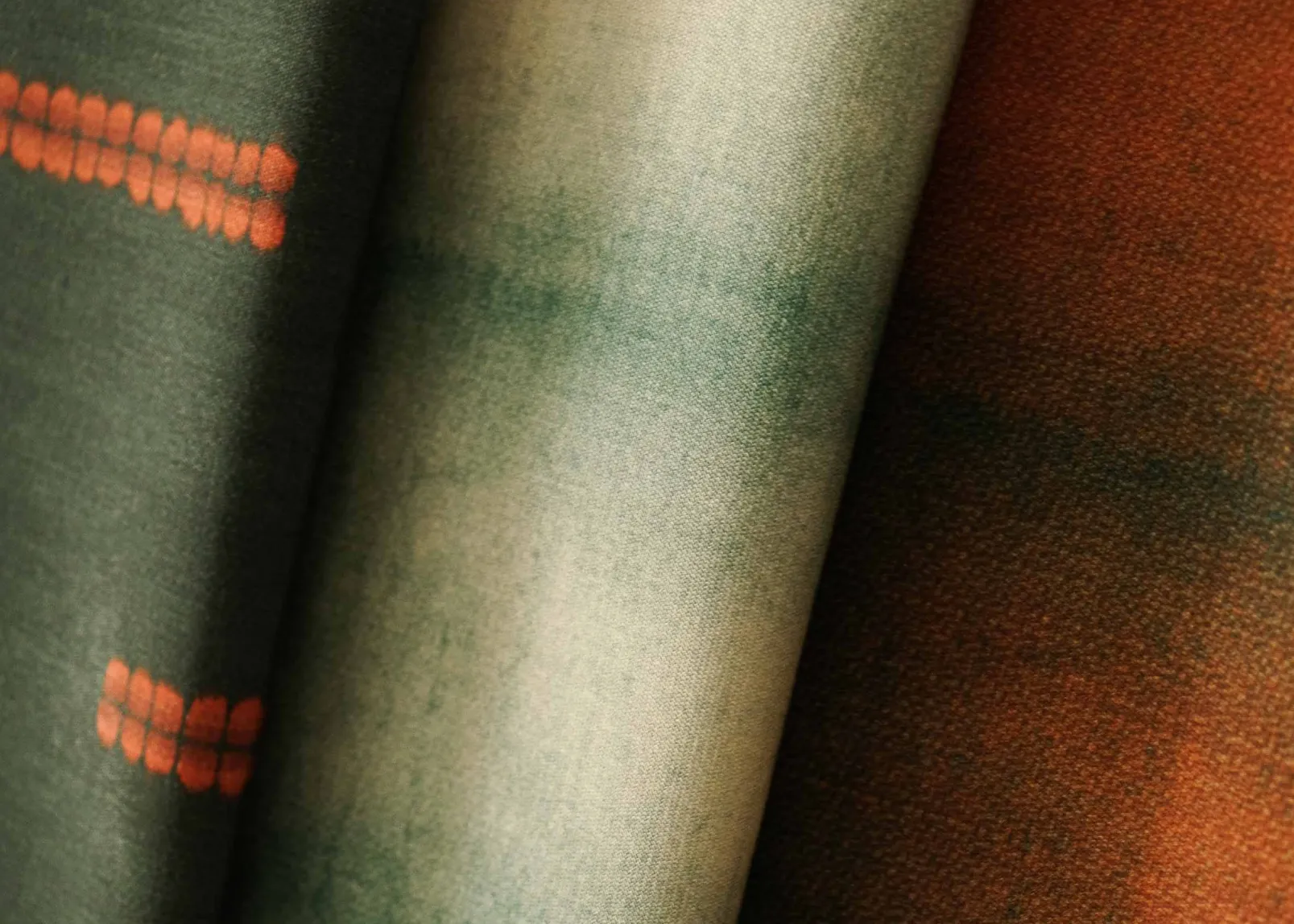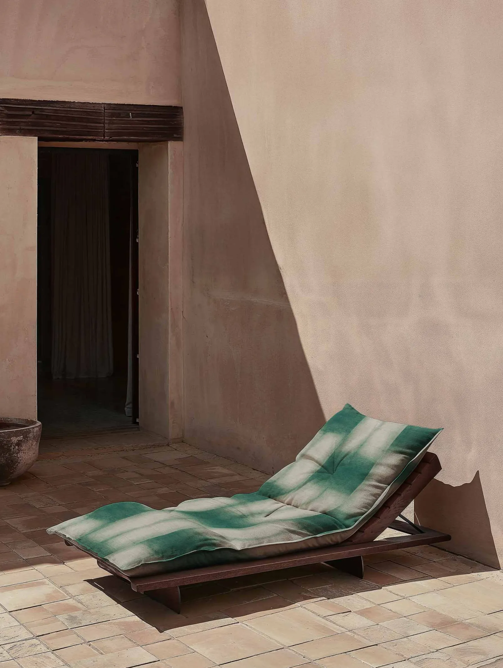 Mokume Nori de Coordonné es un diseño de Texturas en Verde de la colección Shibori Outdoor. Es la impresión del tiempo impresa en tela con certificaciones para uso exterior.