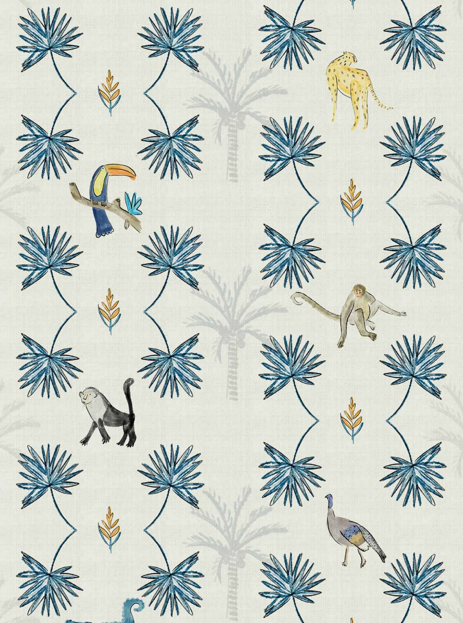 El papel pintado Monteverde Blue de Coordonné es un diseño vegetal en tonos blanco/gris de la colección Wander.