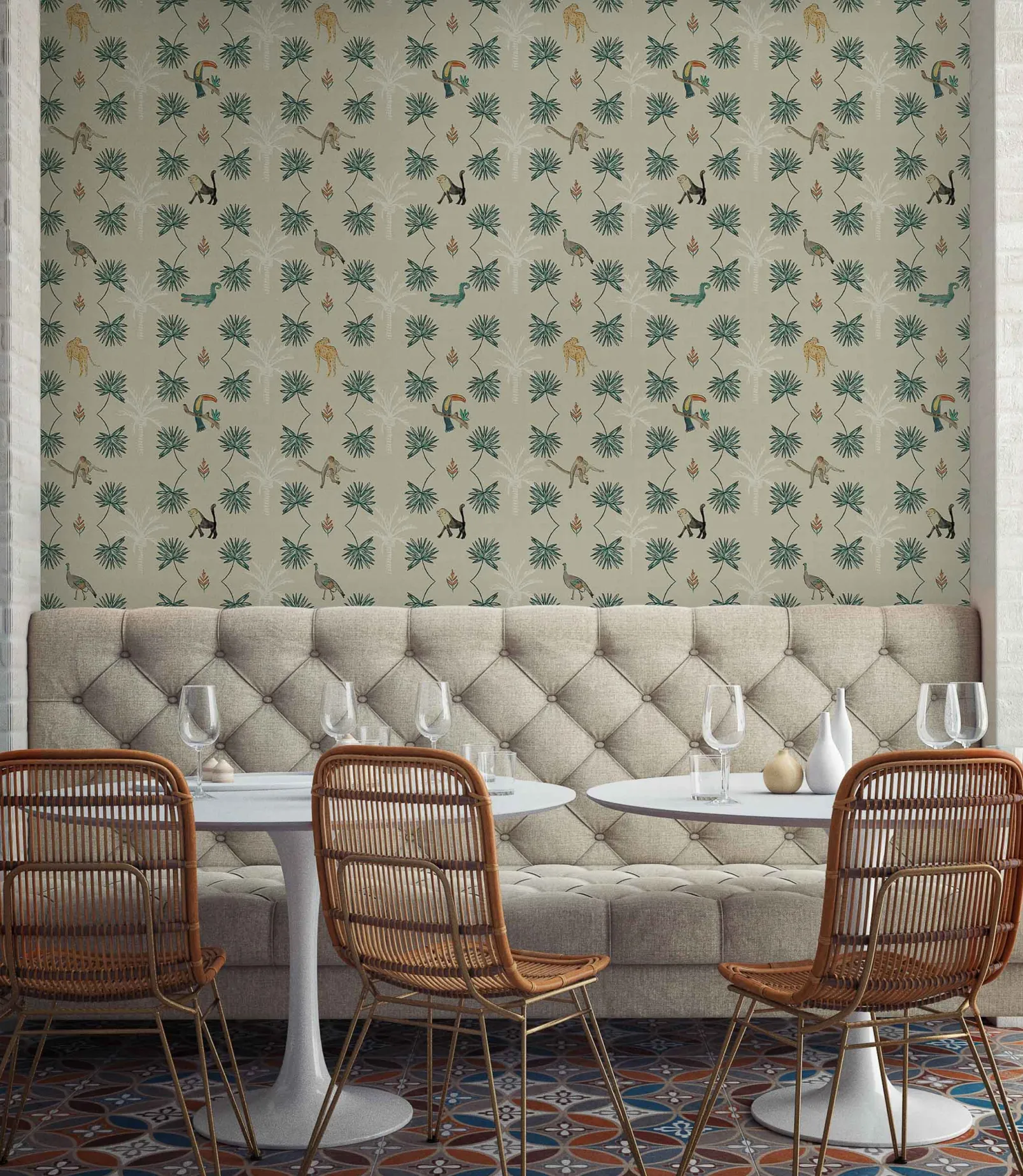 El papel pintado Safari Monteverde de Coordonné es un Vegetal diseñado en tonos Beige/Nude de la colección Wander.