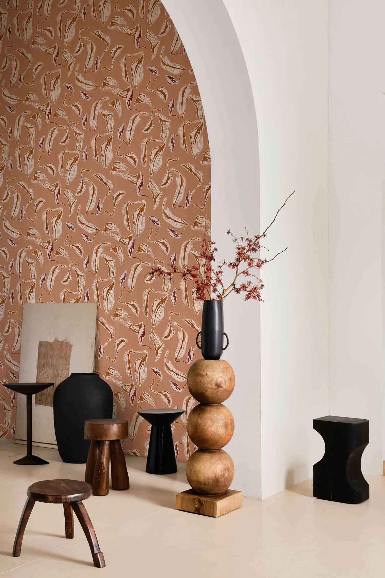 El papel pintado Moroccan branches Pink de Coordonné es un diseño vegetal en tonos rosa/lila de la colección Central Saint Martins – Rest Time. Ese viaje por Marruecos donde los colores, la luz y la vegetación mediterránea cautivaron mi alma.