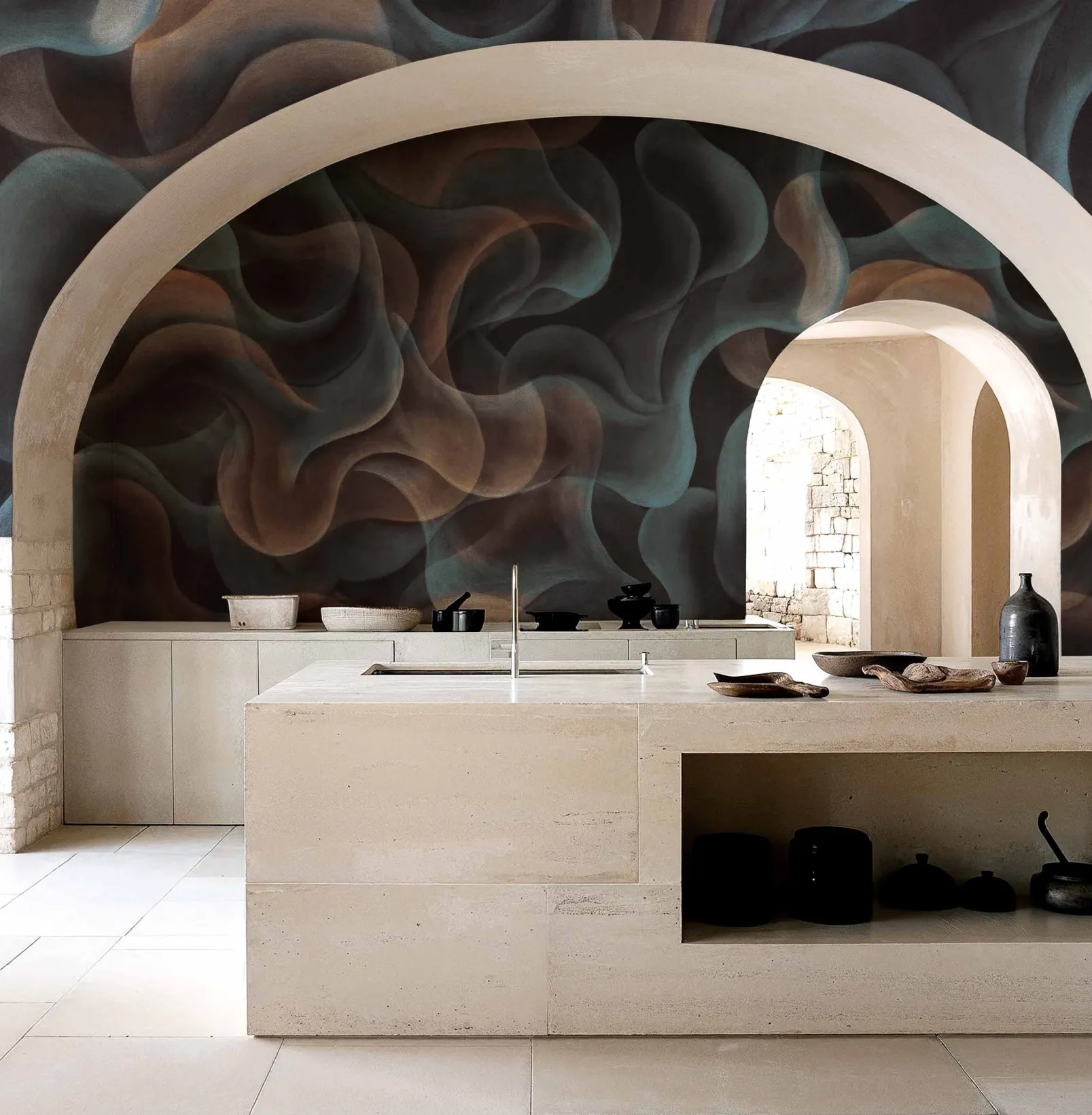 My cave Silver de Coordonné es un diseño Texturas en azul/azul marino de la colección Random Metallics II. Un caótico juego de pliegues enredados como una madeja de hilo.
