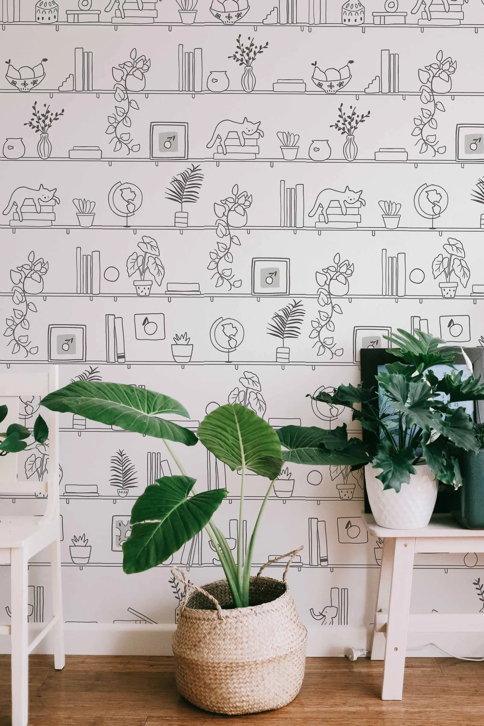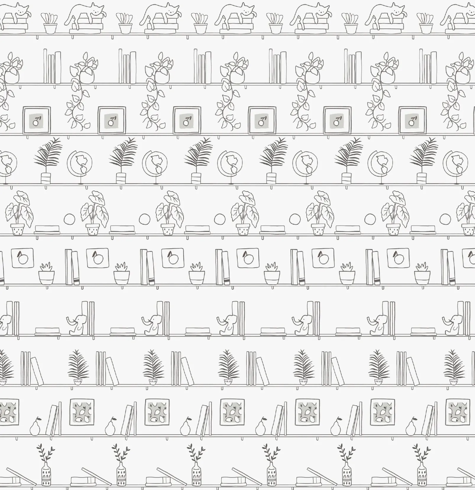 El papel pintado Mi biblioteca dálmata de Coordonné es un objeto diseñado en tonos blanco/gris de la colección Random Kids.