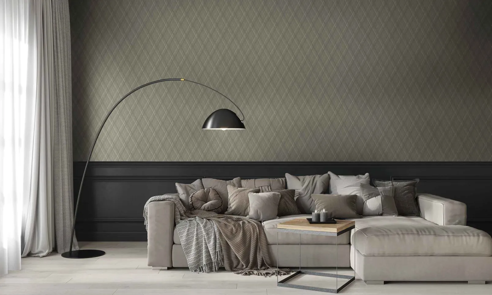 El papel pintado Necktie Stone de Coordonné es un diseño de Rayas en tonos Beige/Nude de la colección Tartan.