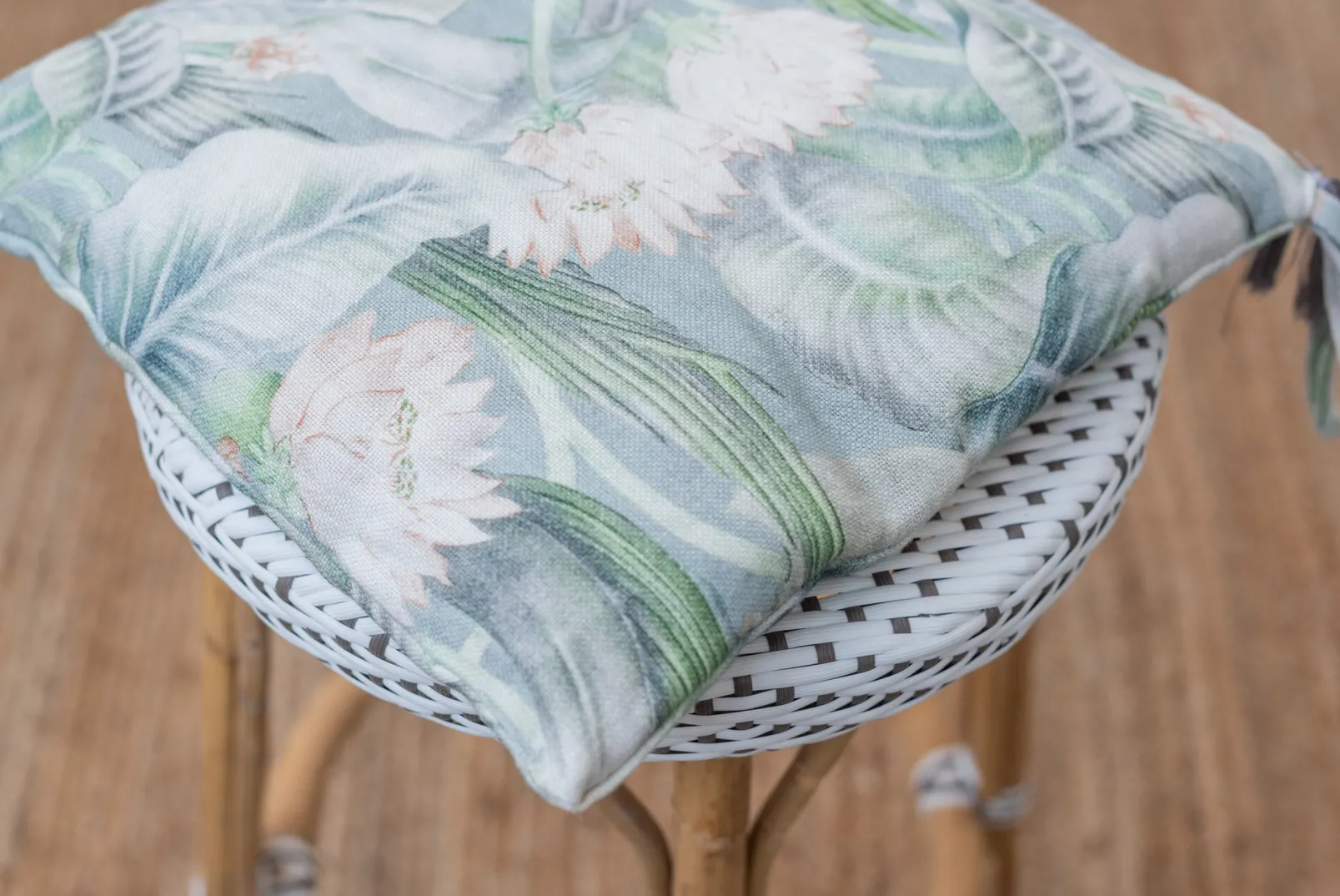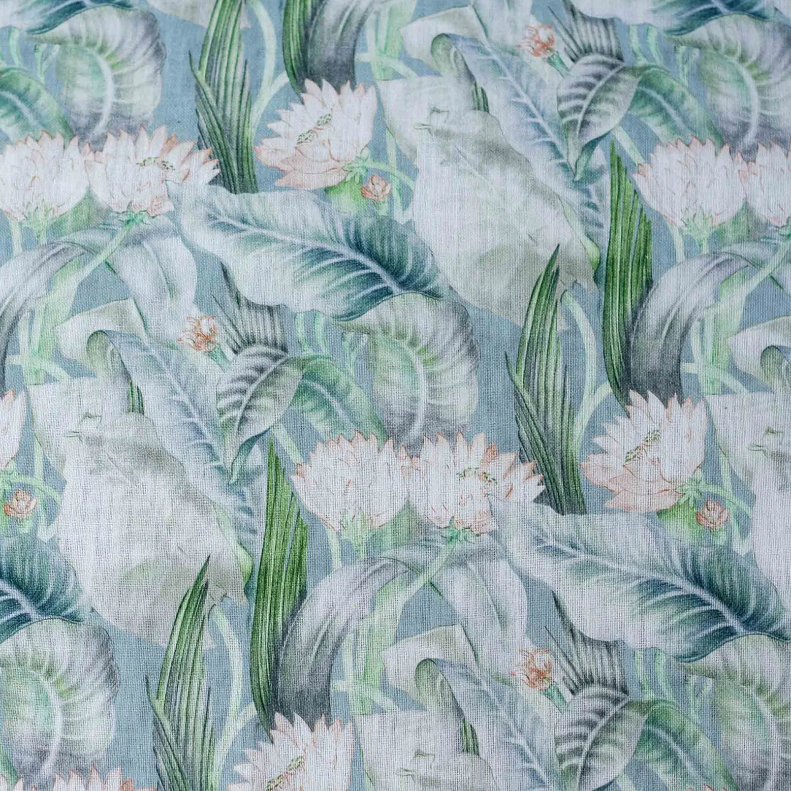El tejido Nenuphars Aqua de Coordonné es un diseño floral en blanco/gris de la colección Maasai.