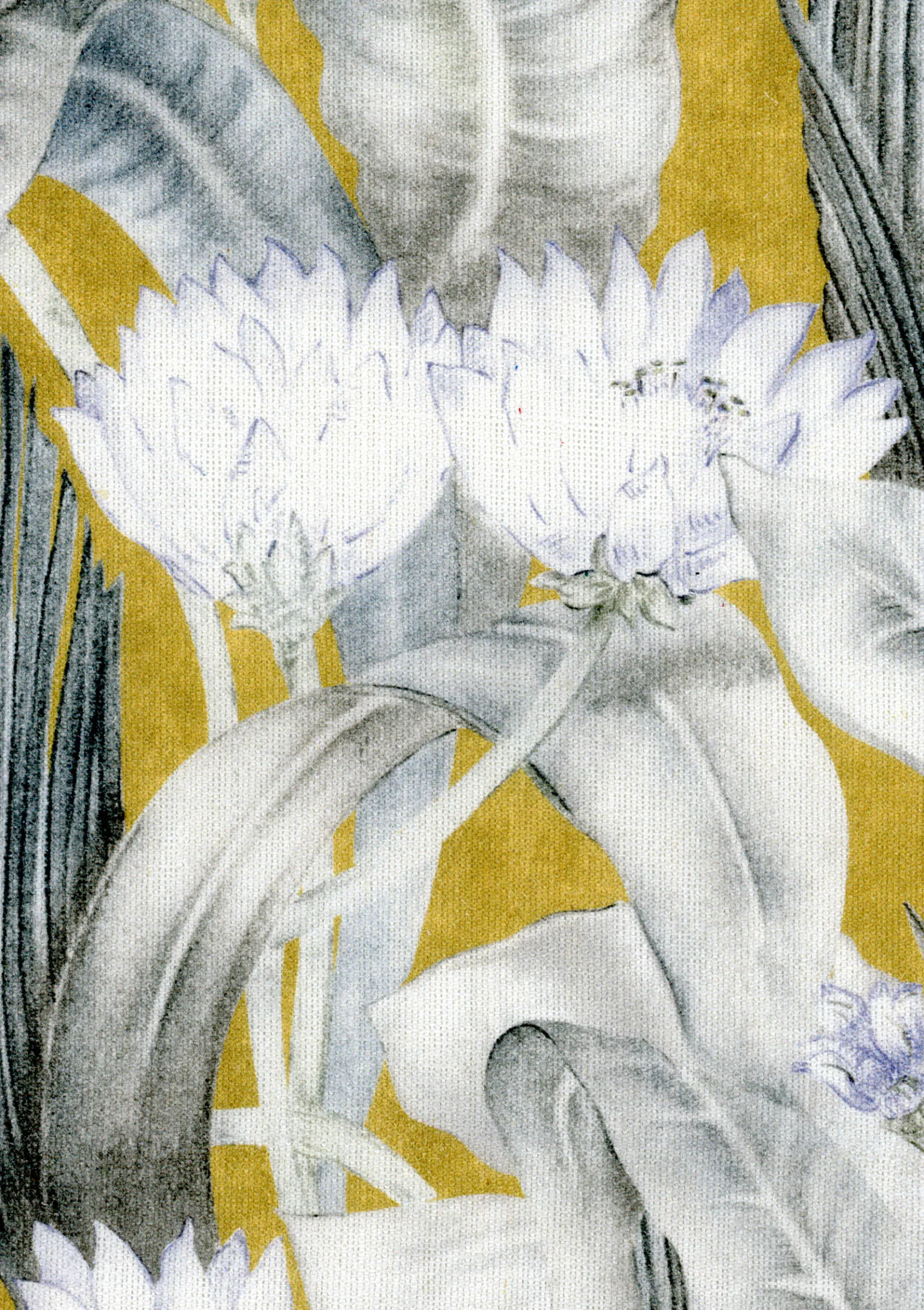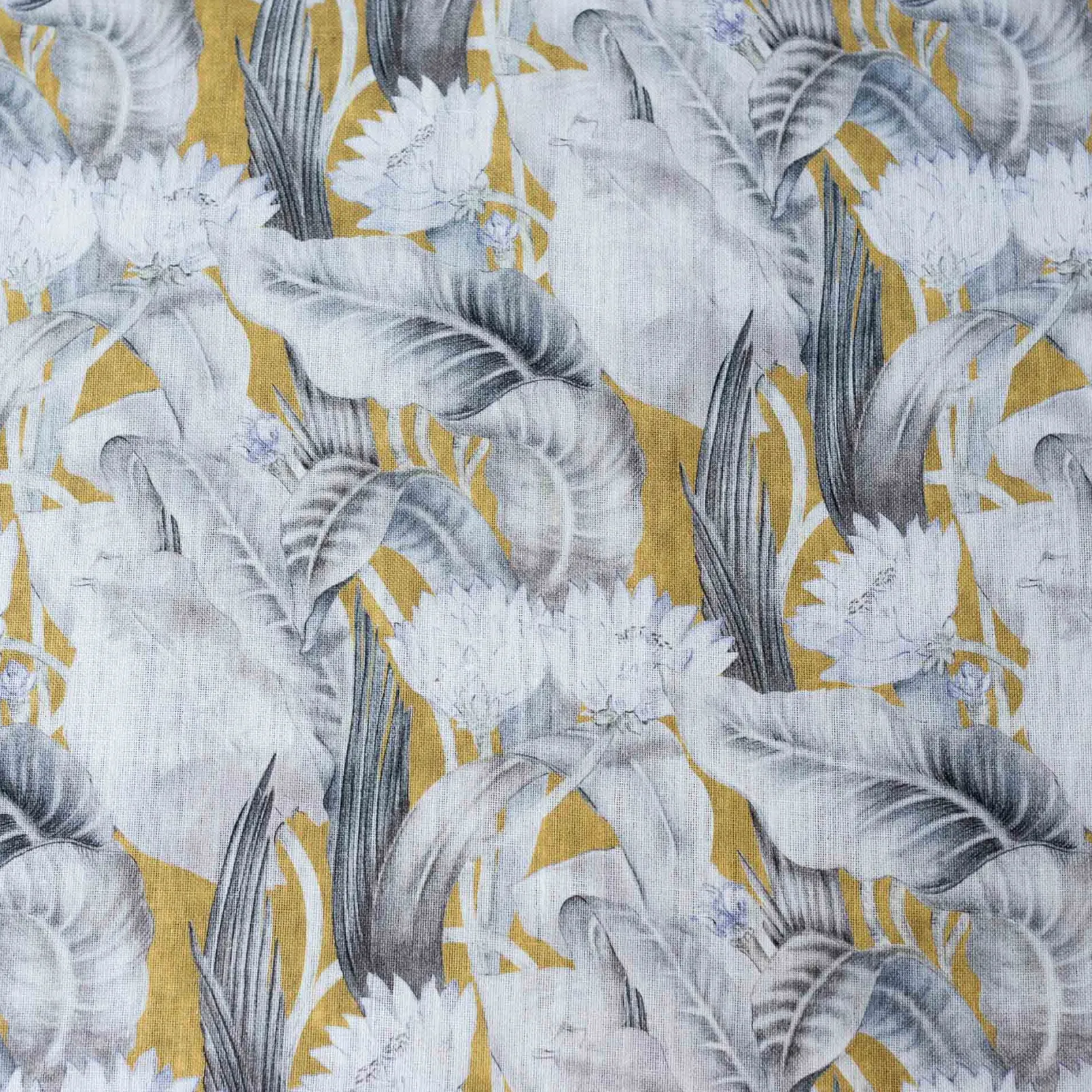 El tejido Nenuphars Ocre de Coordonné es un diseño floral en amarillo/naranja de la colección Maasai.