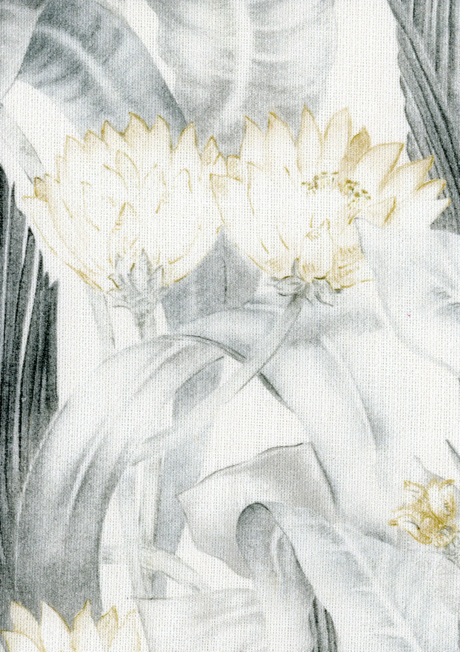 El tejido Nenuphars Plata de Coordonné es un diseño floral en blanco/gris de la colección Maasai.