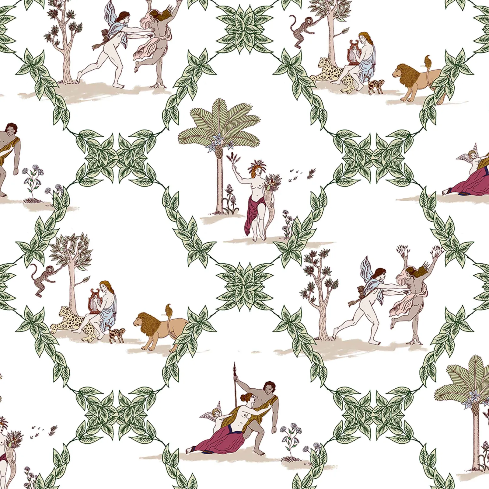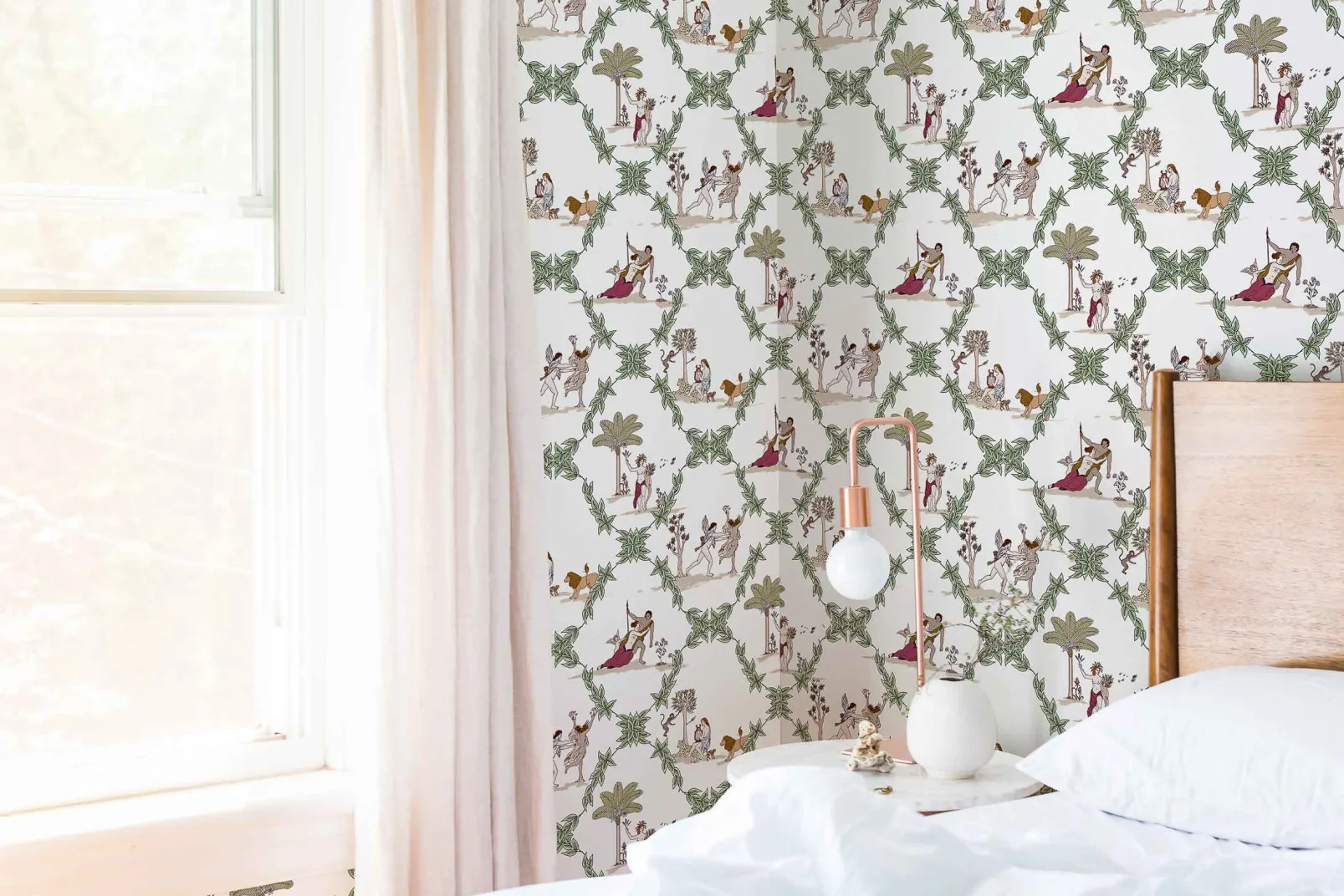 El papel pintado Neobucolic White de Coordonné es un pueblo diseñado en tonos blanco/gris de la colección Metamorphosis.