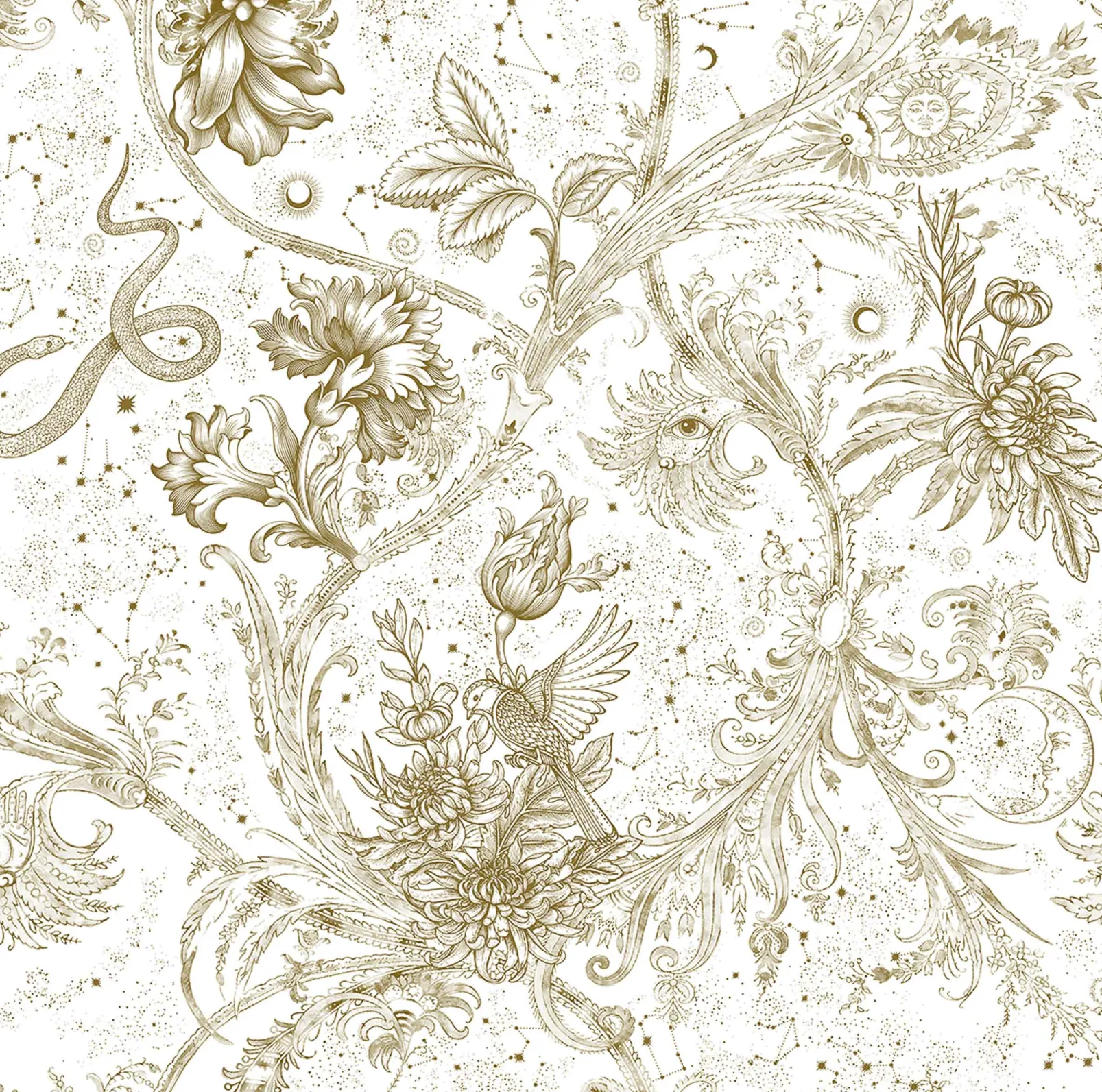 El papel pintado Neomithology Gold de Coordonné es un animal diseñado en tonos amarillo/naranja de la colección Metamorphosis.