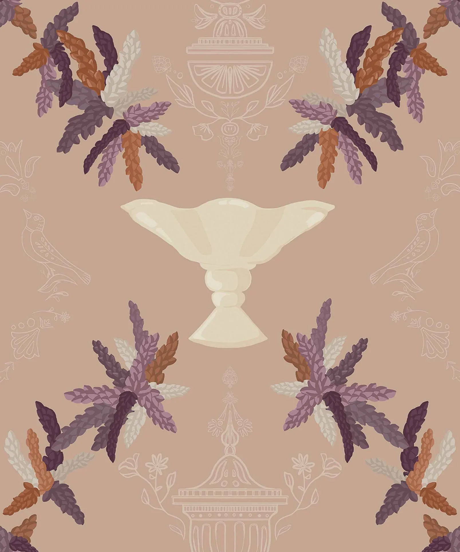 El papel pintado Neorococo Nude de Coordonné es un diseño Geométrico en tonos Rosa/Lila de la colección Metamorfosis.