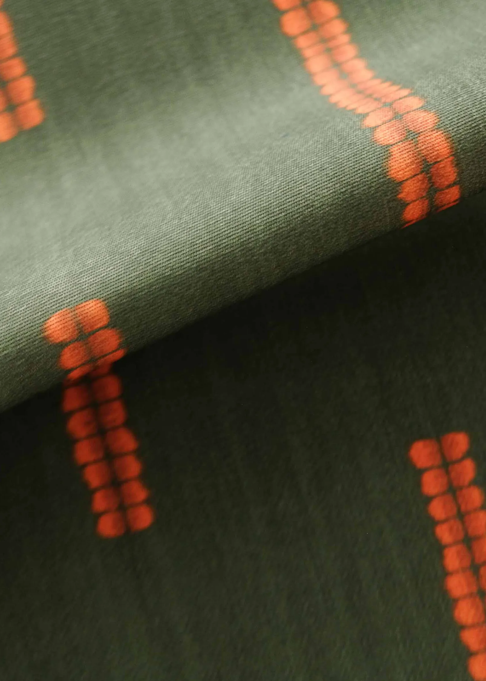 Nui Cypress de Coordonné es un diseño de Texturas en Verde de la colección Shibori Outdoor. Es la impresión del tiempo impresa en tela con certificaciones para uso exterior.