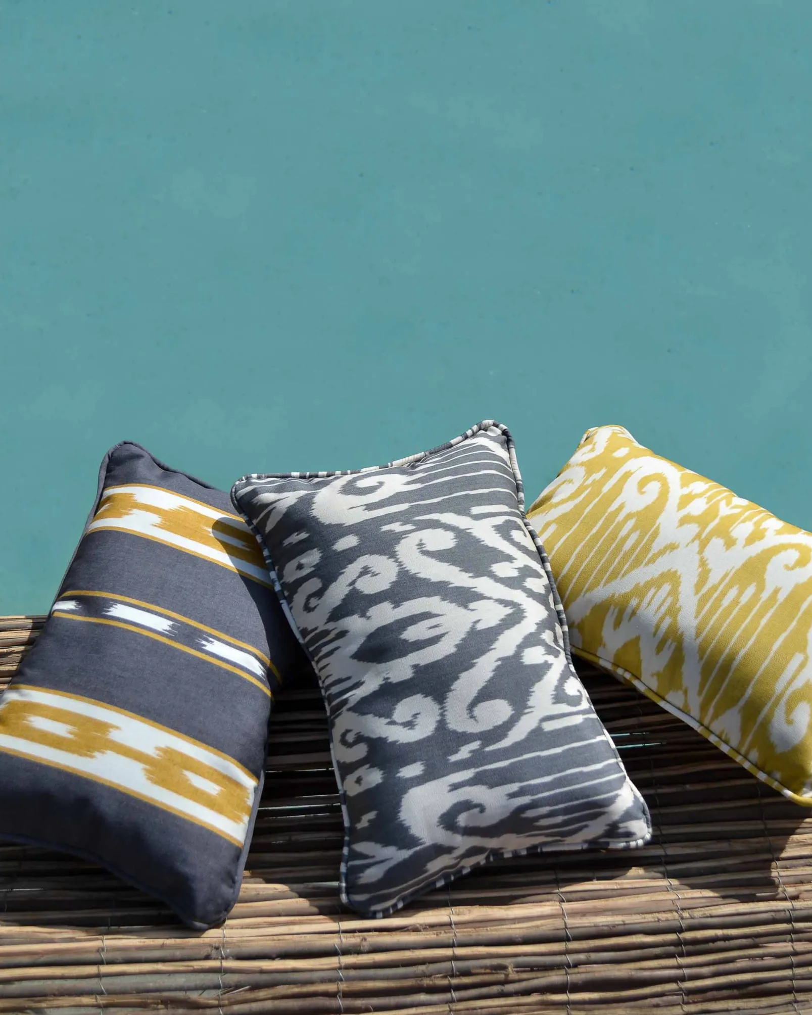 Padmasalis Black de Coordonné es un diseño vegetal en tonos negros de la colección Ikart Outdoor. Poderoso tejido mágico hecho por los nacidos del loto.