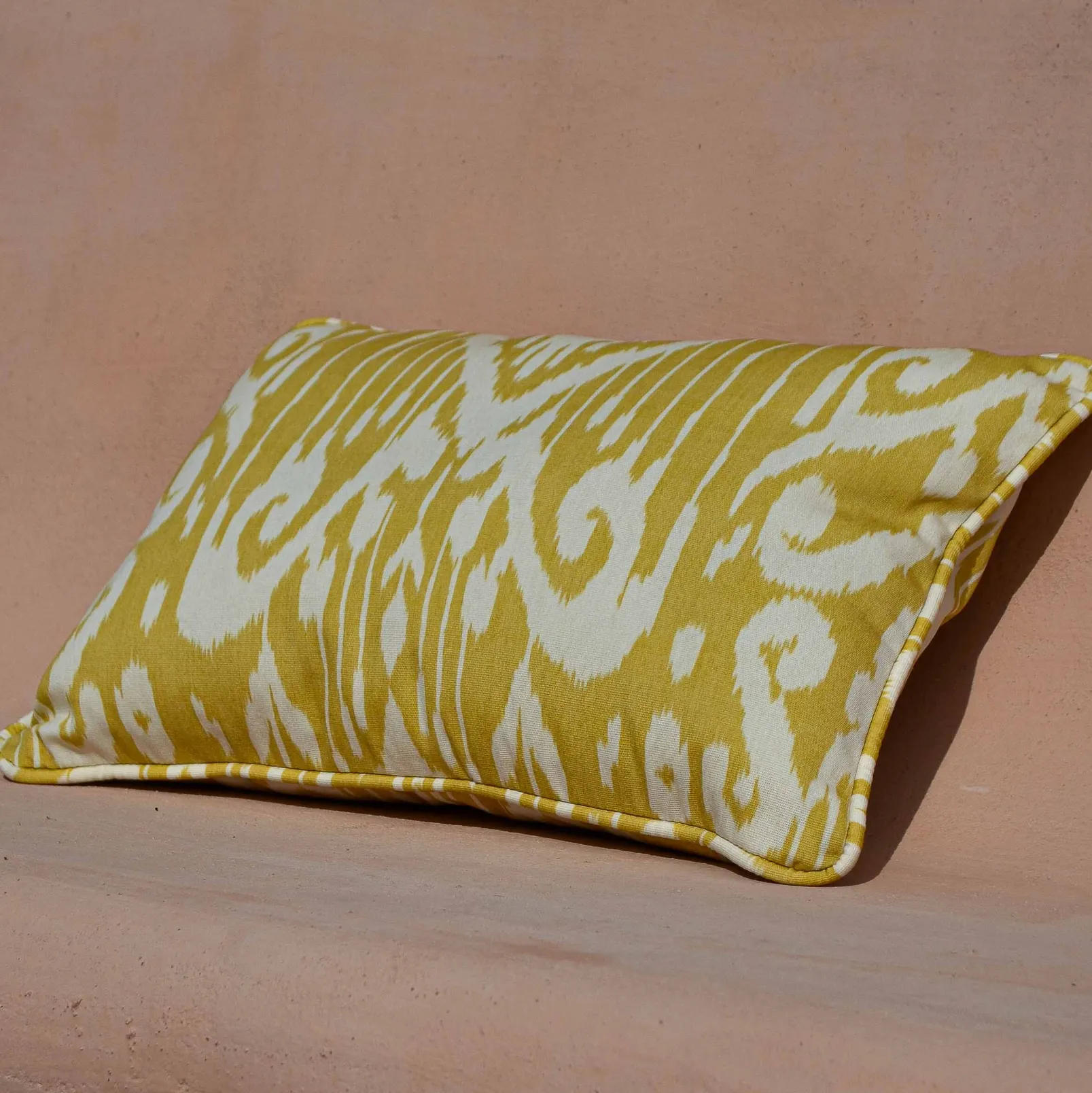 El Padmasalis Mustard de Coordonné es un diseño vegetal en tonos amarillo/naranja de la colección Ikart Outdoor. Poderoso tejido mágico hecho por los nacidos del loto.