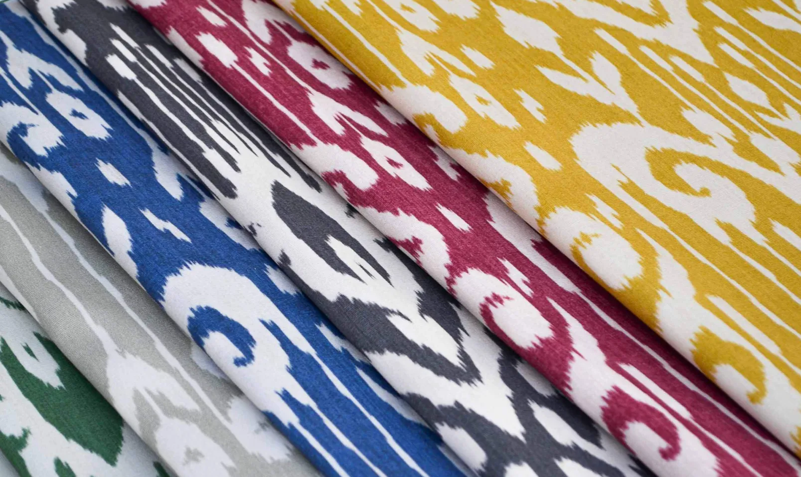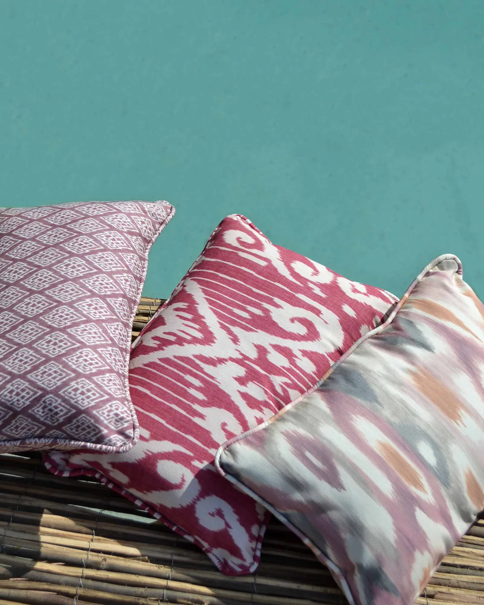 Padmasalis Wine de Coordonné es un diseño vegetal en tonos rojo/vino de la colección Ikart Outdoor. Poderoso tejido mágico hecho por los nacidos del loto.