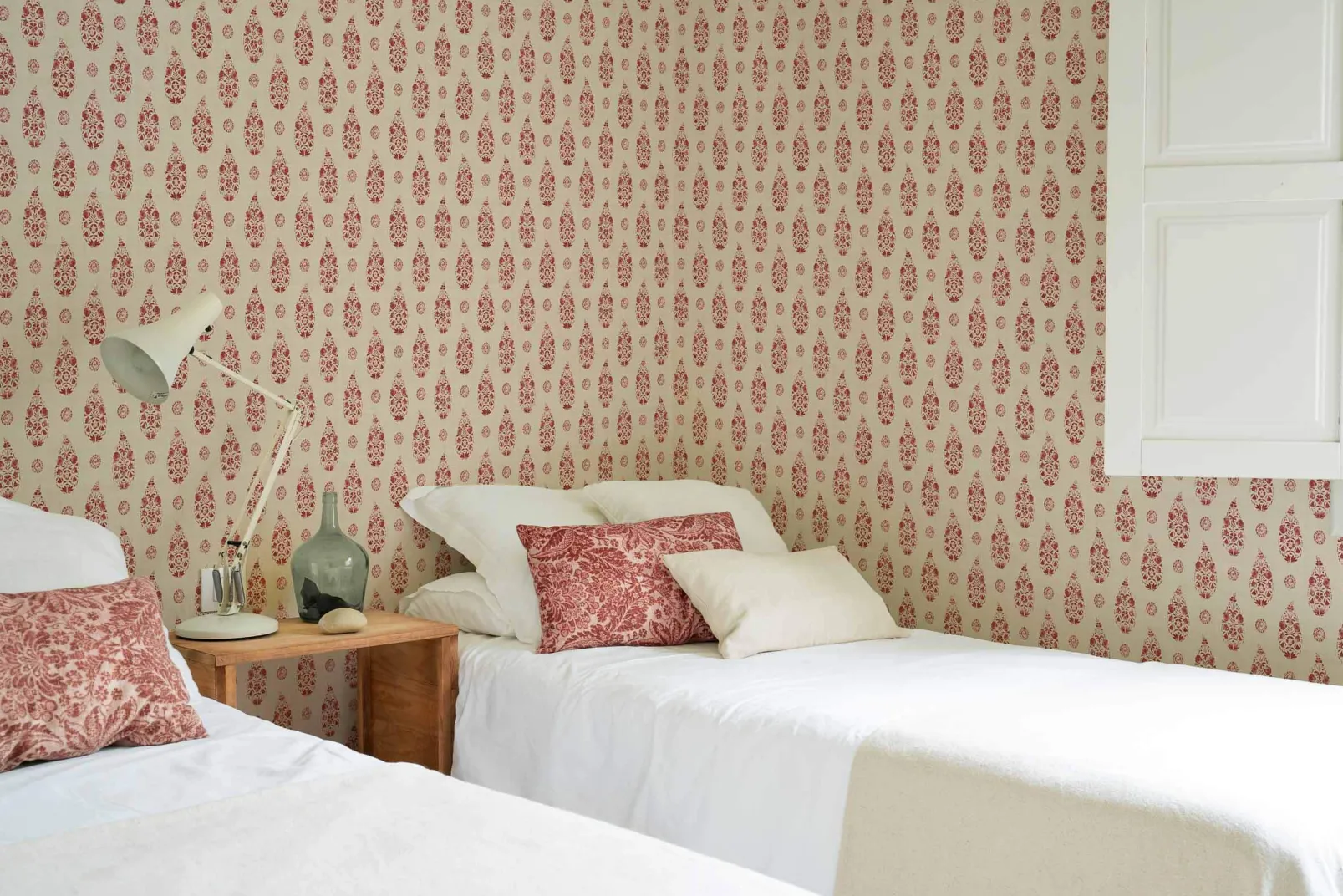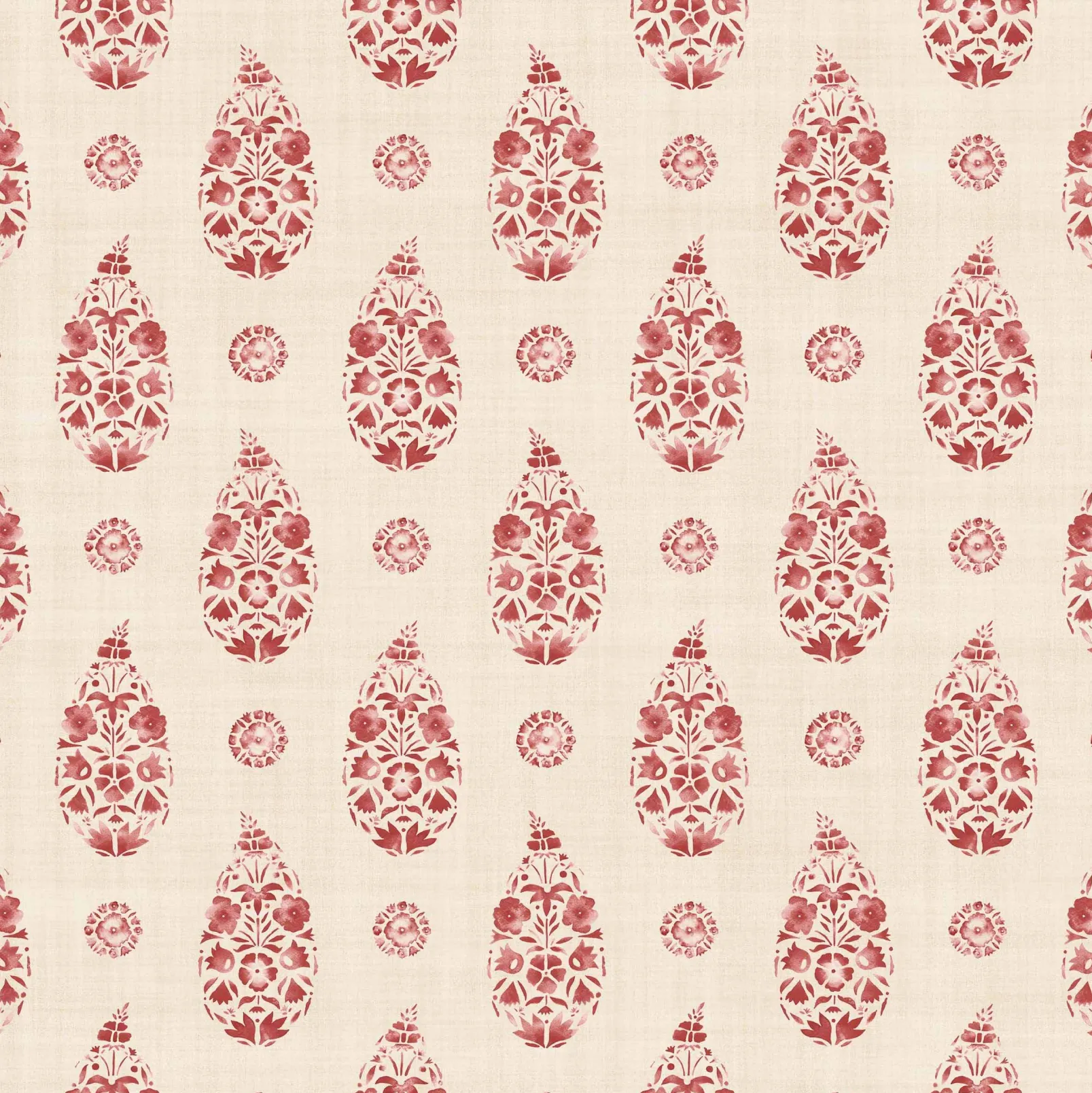Paisley Red de Coordonné es un papel pintado de inspiración vegetal en color Rojo/Vino. Formas de lágrimas únicas que buscan universos paralelos.