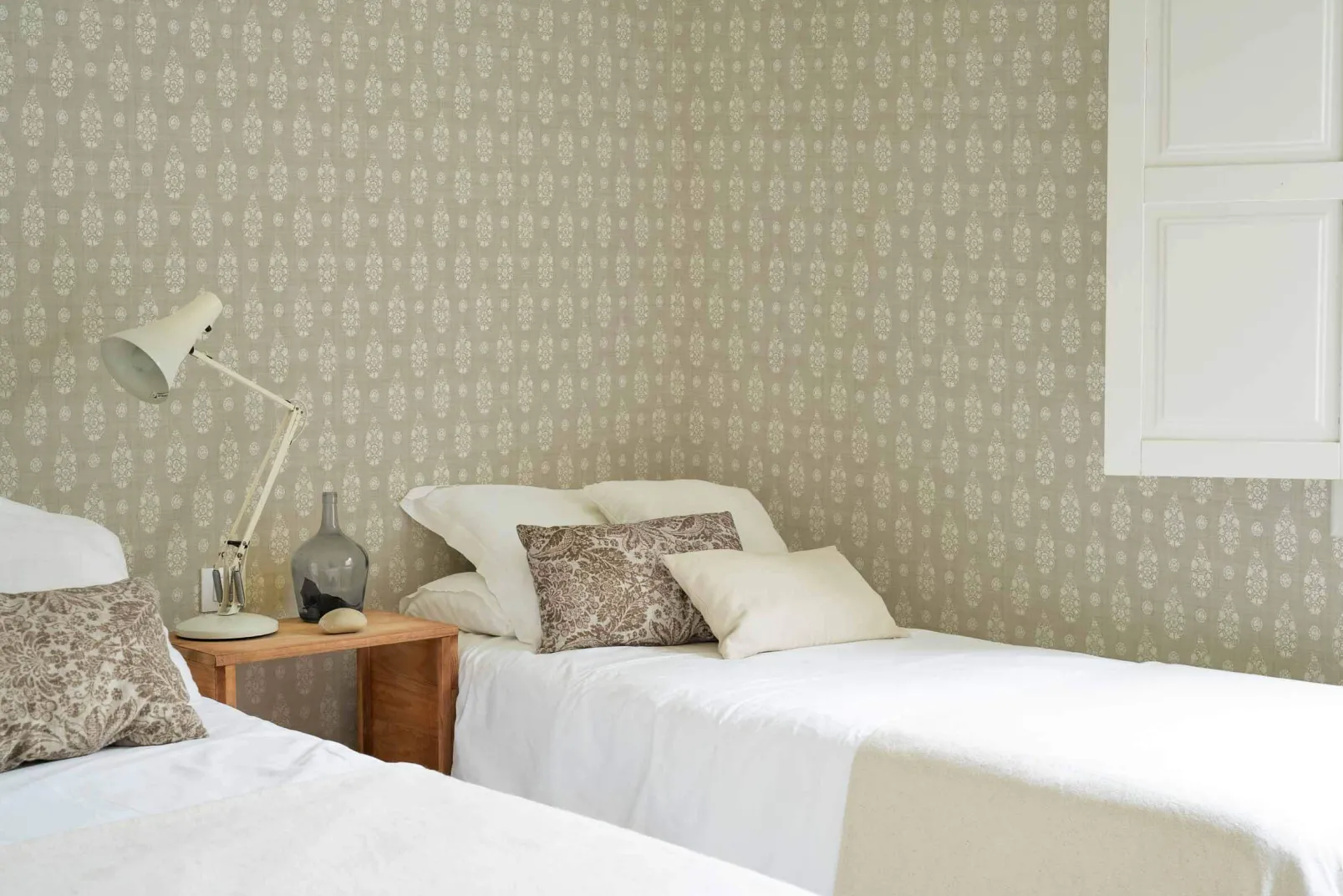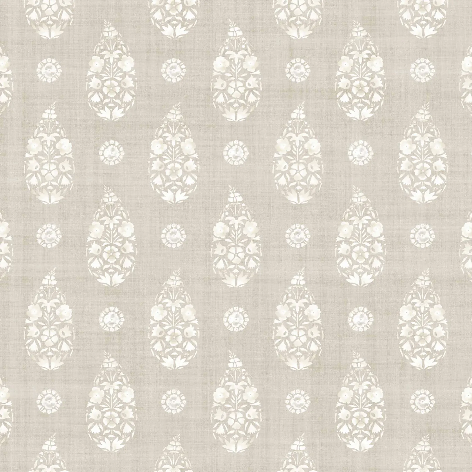 Paisley Taupe de Coordonné es un papel pintado de inspiración vegetal en color Marrón. Formas de lágrimas únicas que buscan universos paralelos.