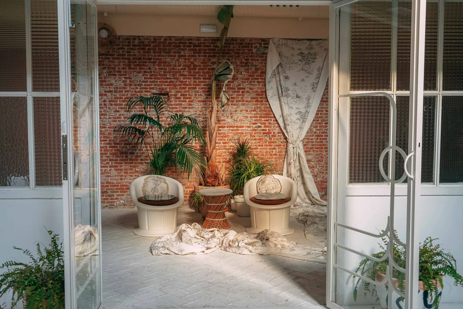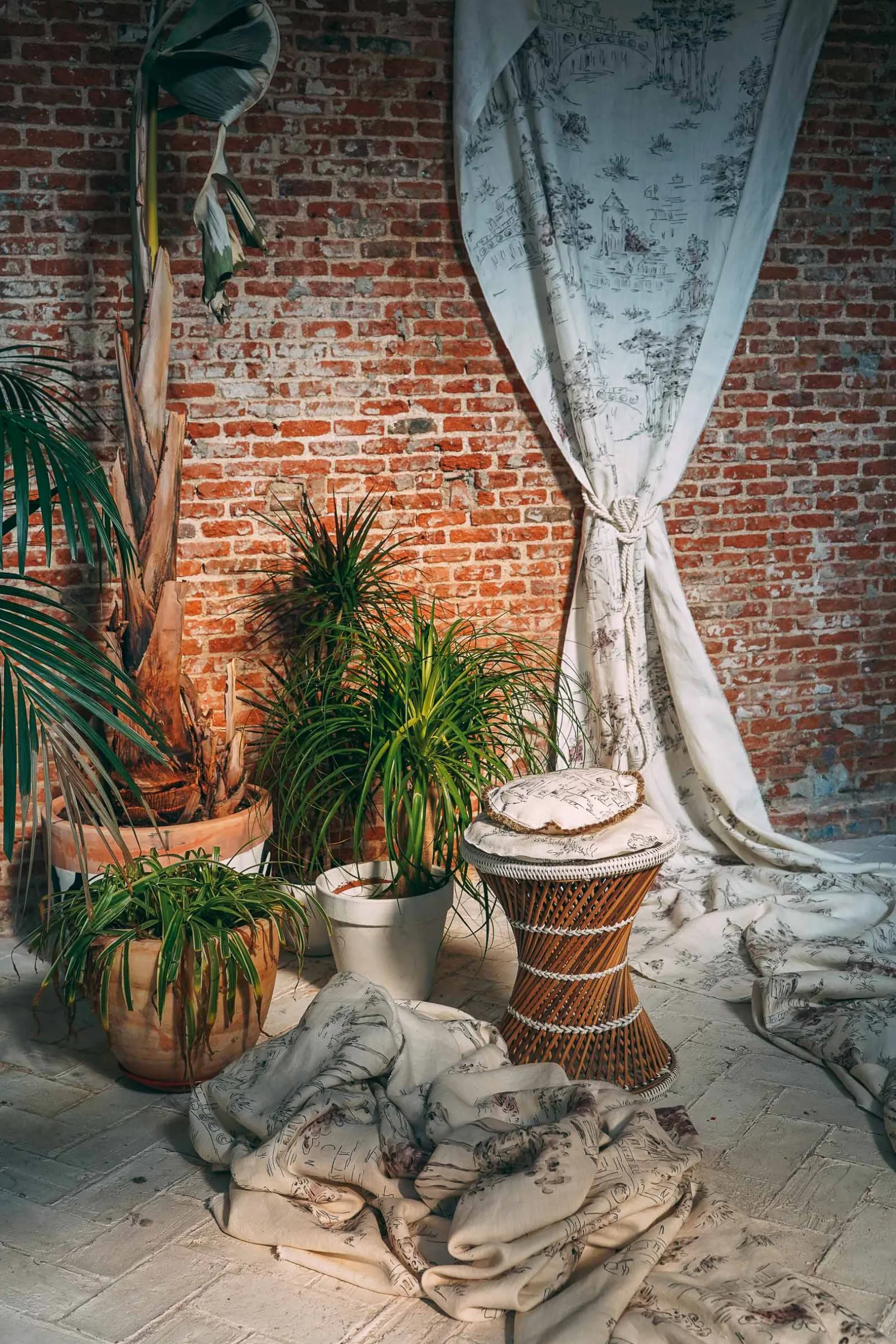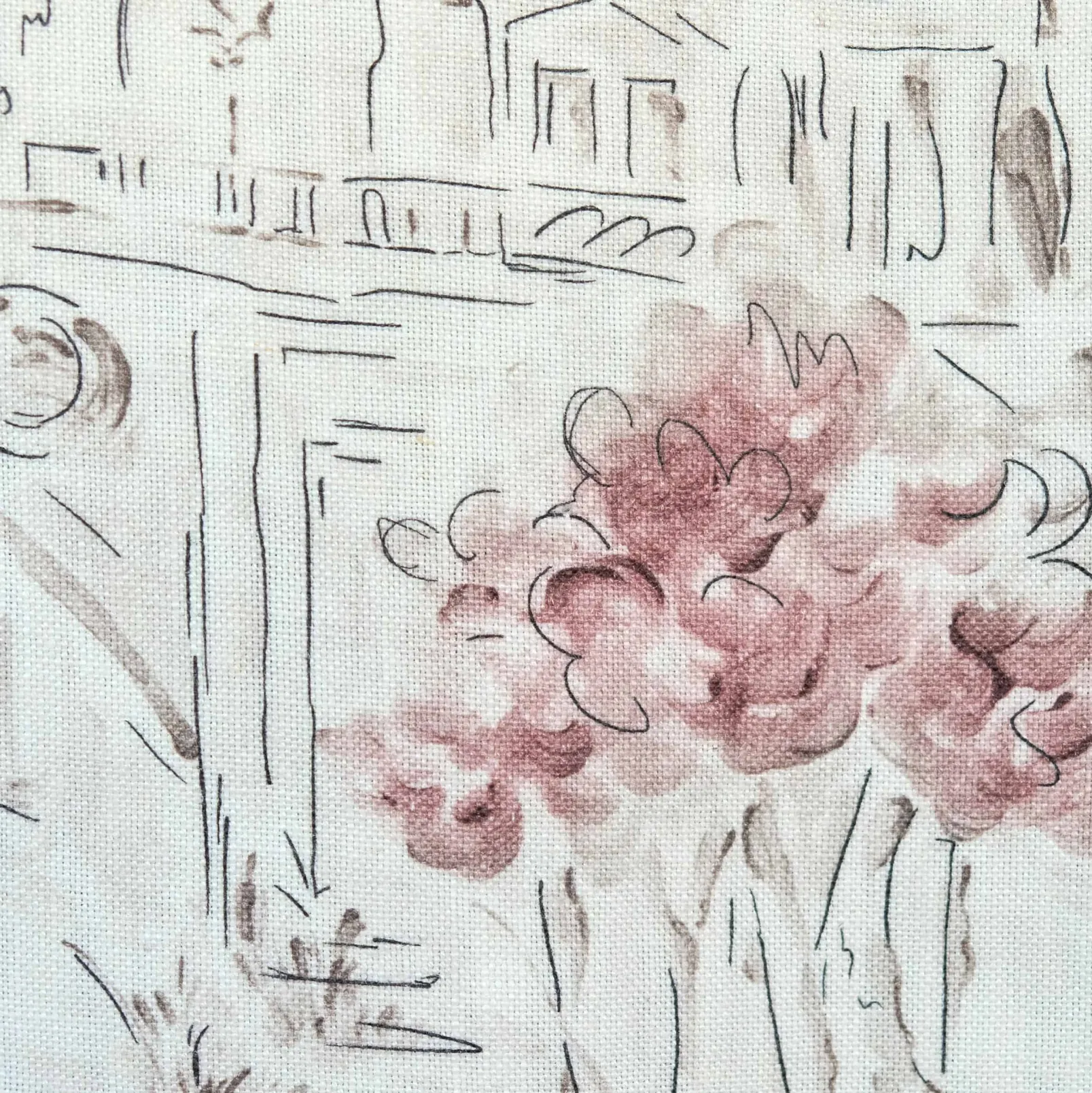 La tela Palazzo Ciruela de Coordonné es un diseño de rayas en rojo/vino de la colección Toscana.