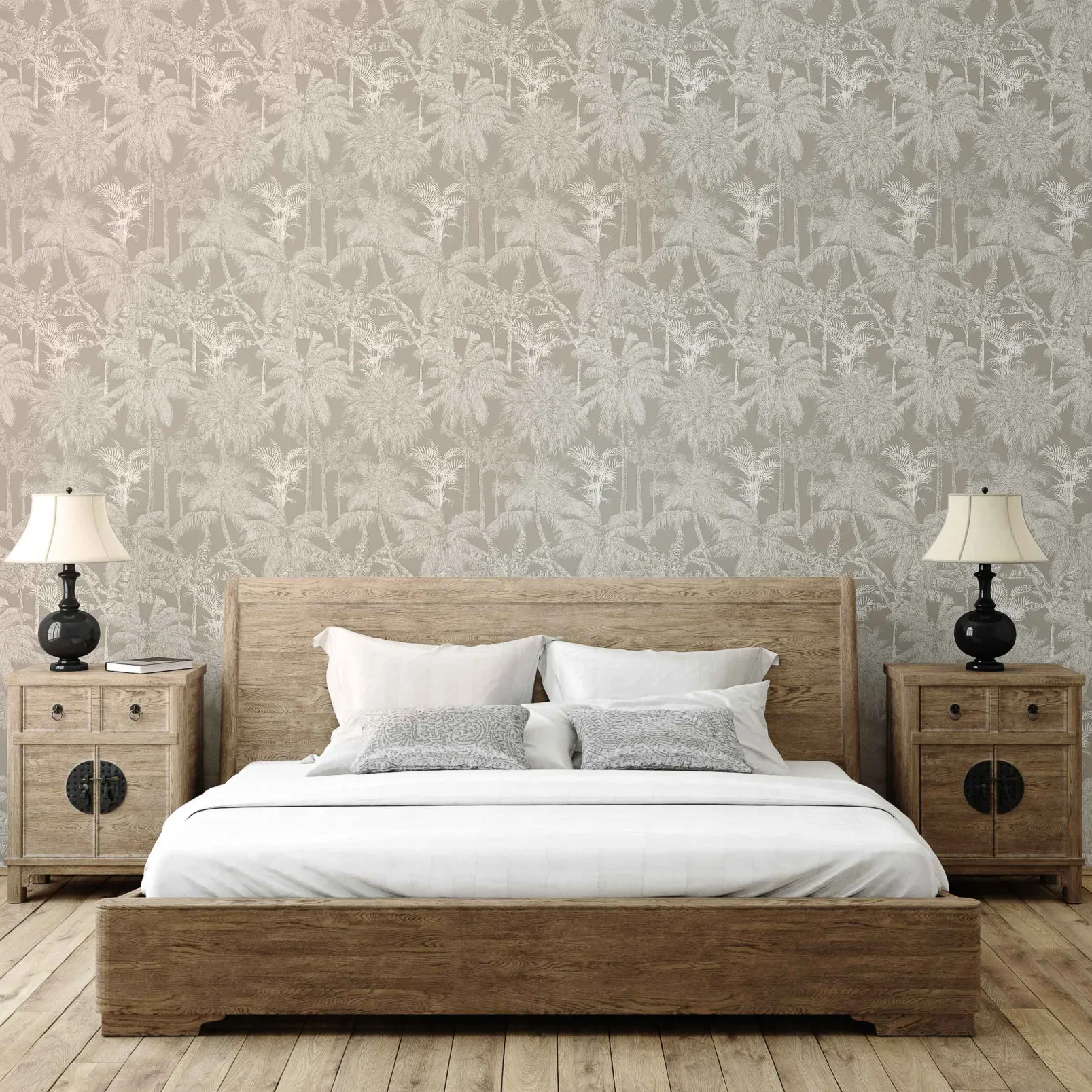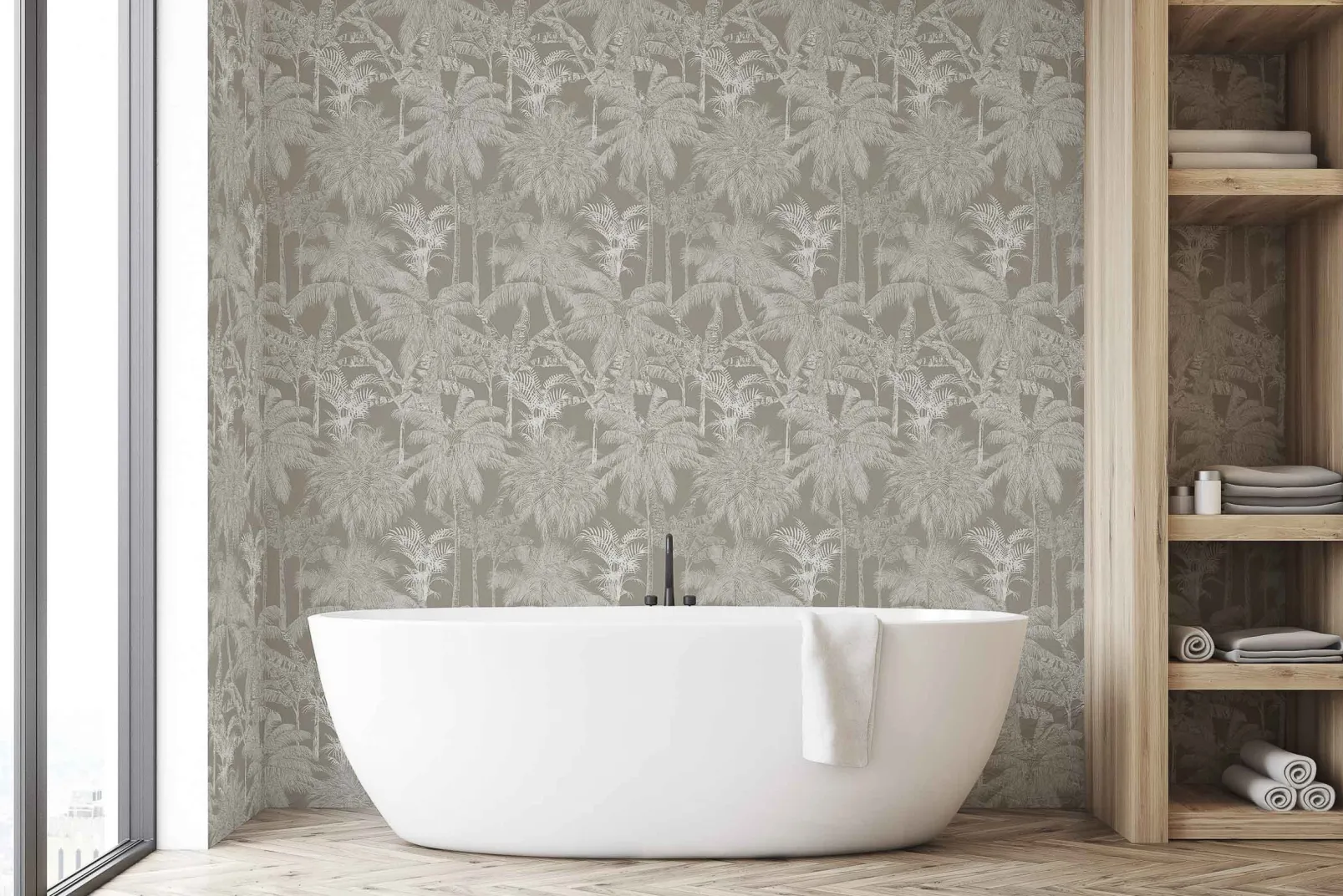 El papel pintado Palms Piedra de Coordonné es un diseño Vegetal en tonos Beige/Nude de la colección Brasil.