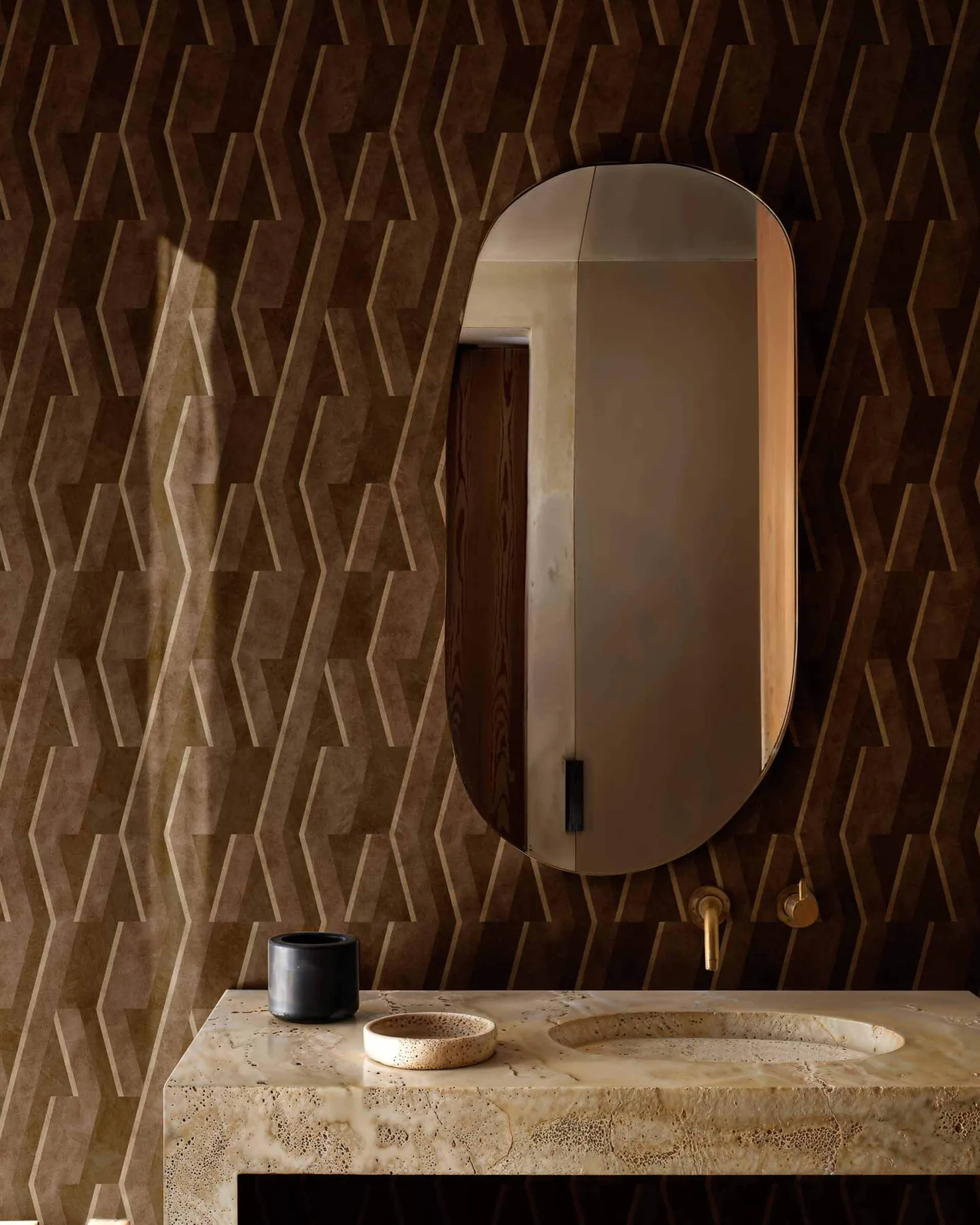 Parallels Chocolate de Coordonne es un papel pintado de inspiración geométrica en tonos marrones de la colección Lattice Geometrics. Perfección sin intersección.