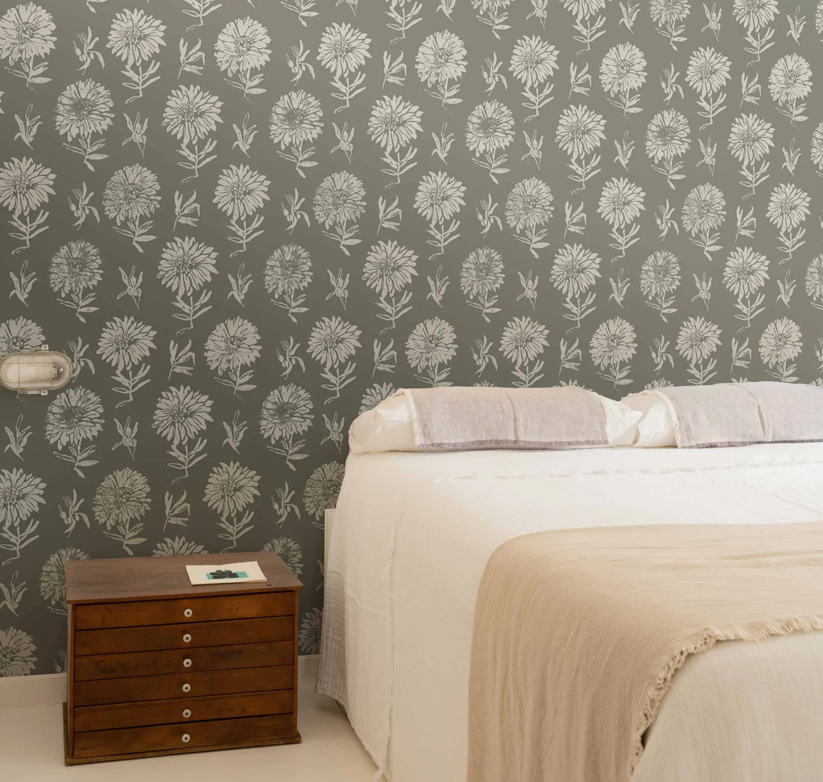 El papel pintado Parterre Laguna de Coordonné es un diseño floral en tonos verdes. Explosivas plantaciones de girasoles que proyectan una energía luminosa.