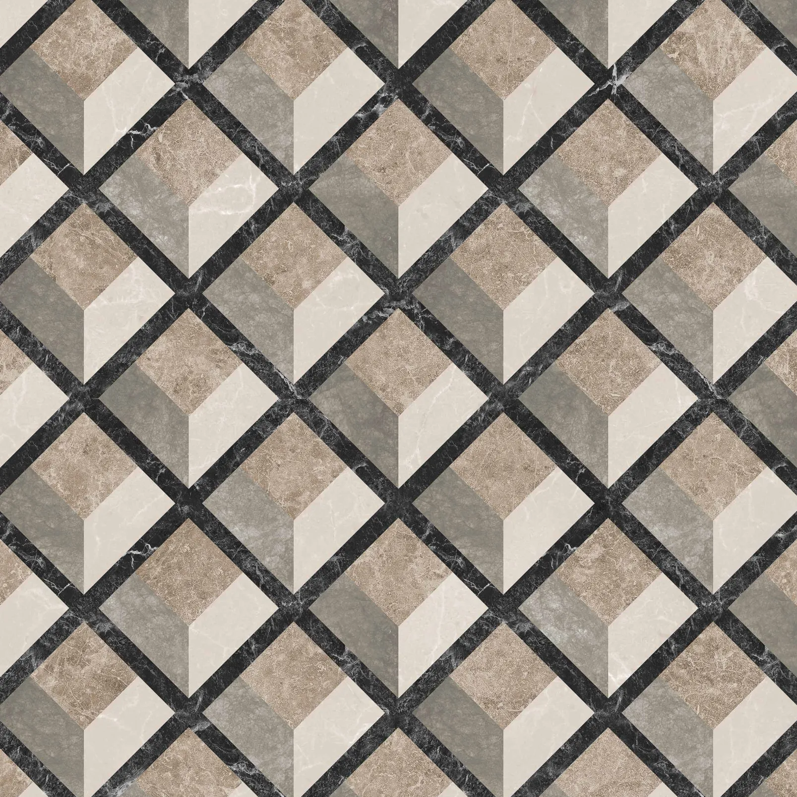 Pavimentum Nacre de Coordonné es un diseño Geométrico en Blanco/Gris de la colección Pompei. Puzzles de mármol extraído de las canteras de los distintos rincones del Imperio.