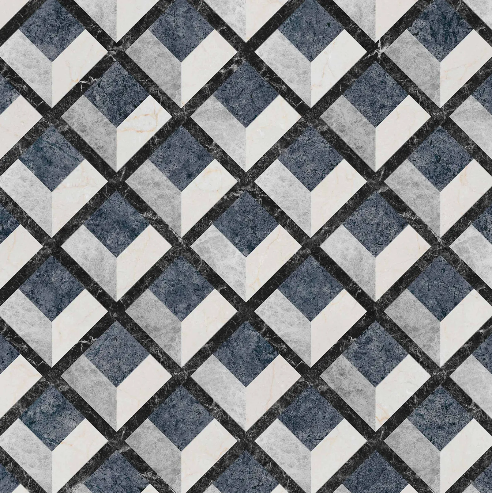 Pavimentum Sapphire de Coordonné es un diseño Geométrico en Azul/Azul Marino de la colección Pompei. Puzzles de mármol extraído de las canteras de los distintos rincones del Imperio.