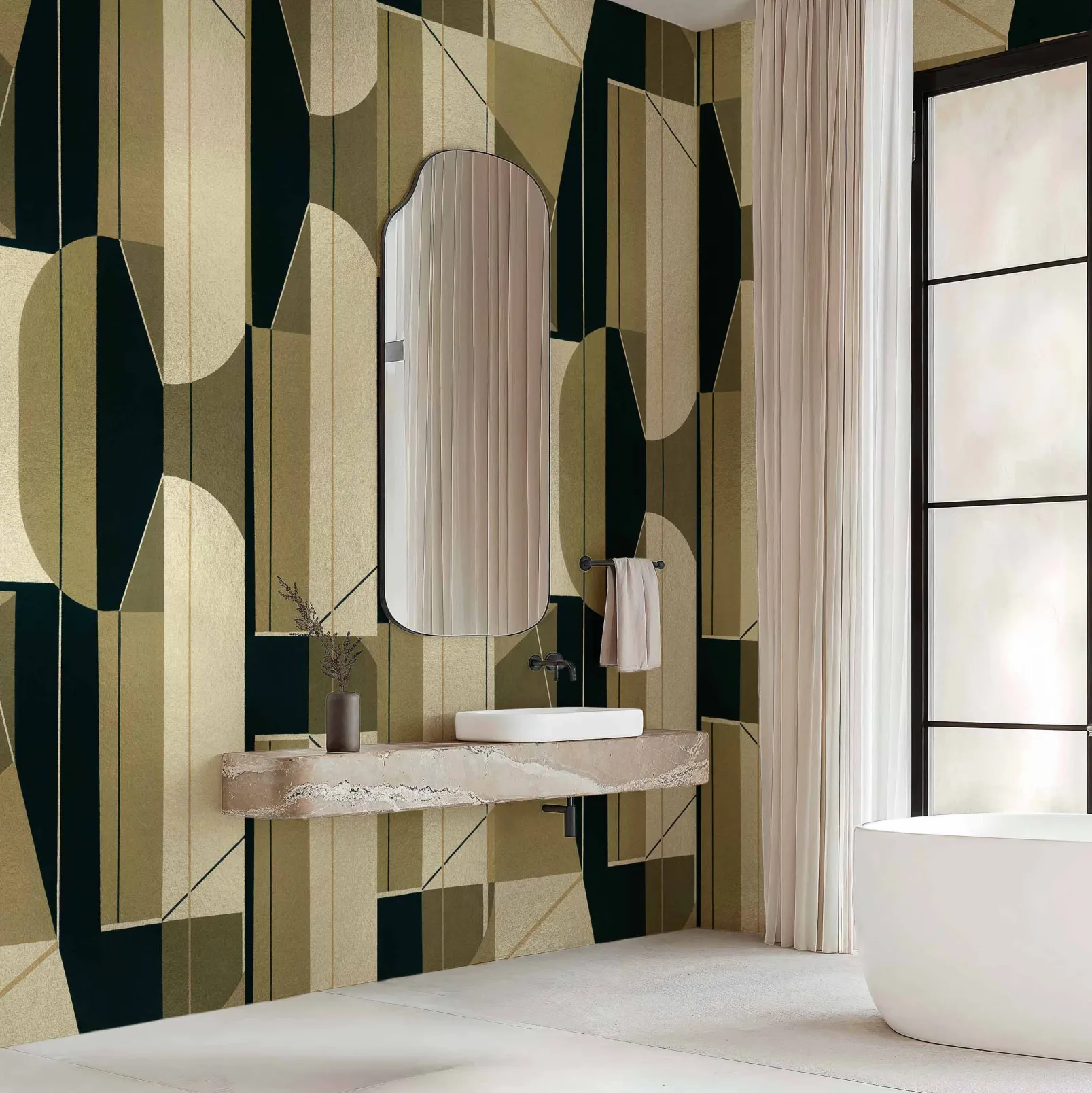 Pythagoras Gold de Coordonné es un diseño geométrico en amarillo/naranja de la colección Random Metallics II. Una ecuación matemática de formas rectangulares simples.