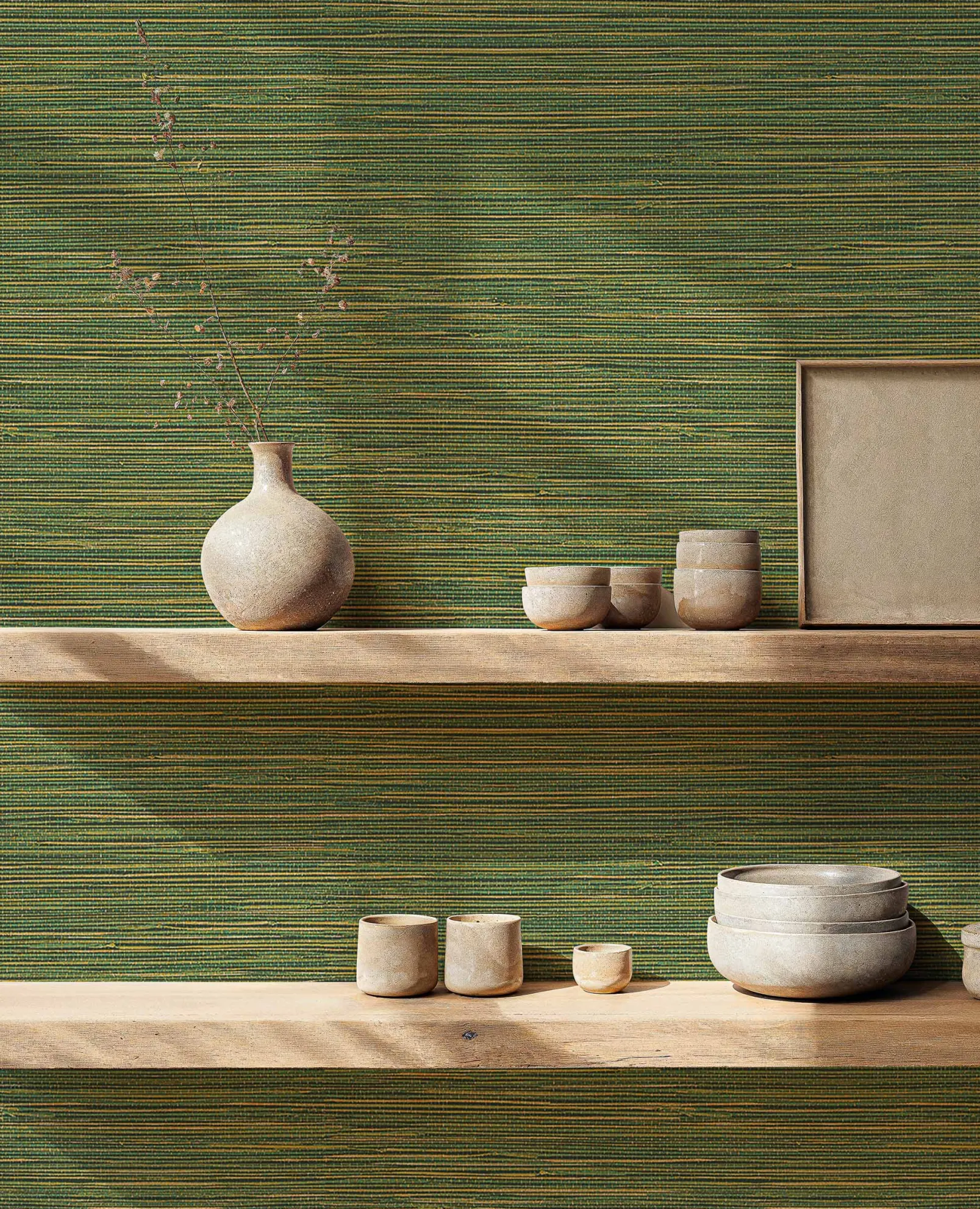 Ratán 45 de Coordonné es un diseño liso en verde de la colección Tactus. Colorido disposición horizontal de rafia plana.