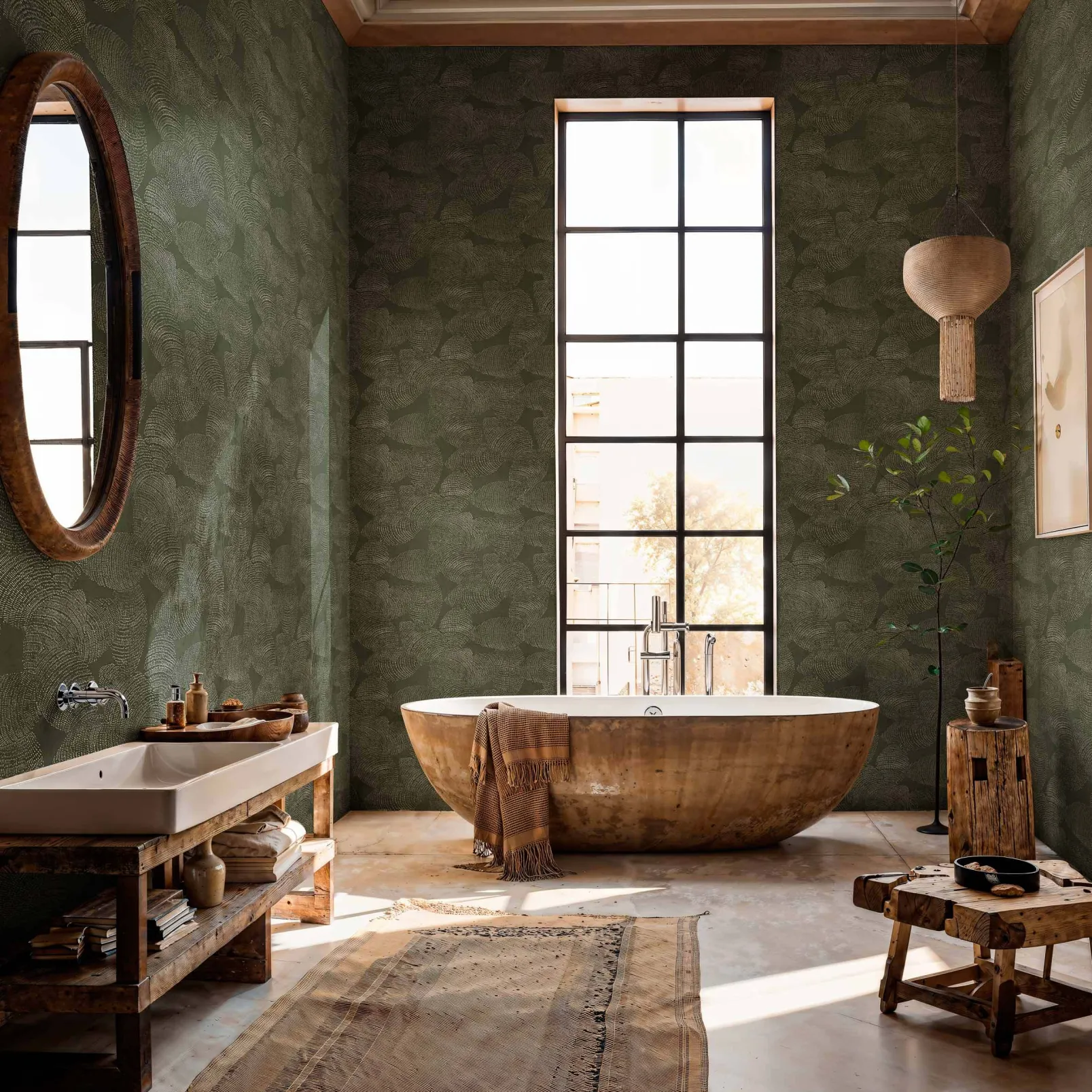 Rif Relieve Sage de Coordonne es un papel pintado inspirado en las texturas en tonos verdes de la colección Bereber. Majestuosas texturas volcánicas de las montañas del Valle del Rif.