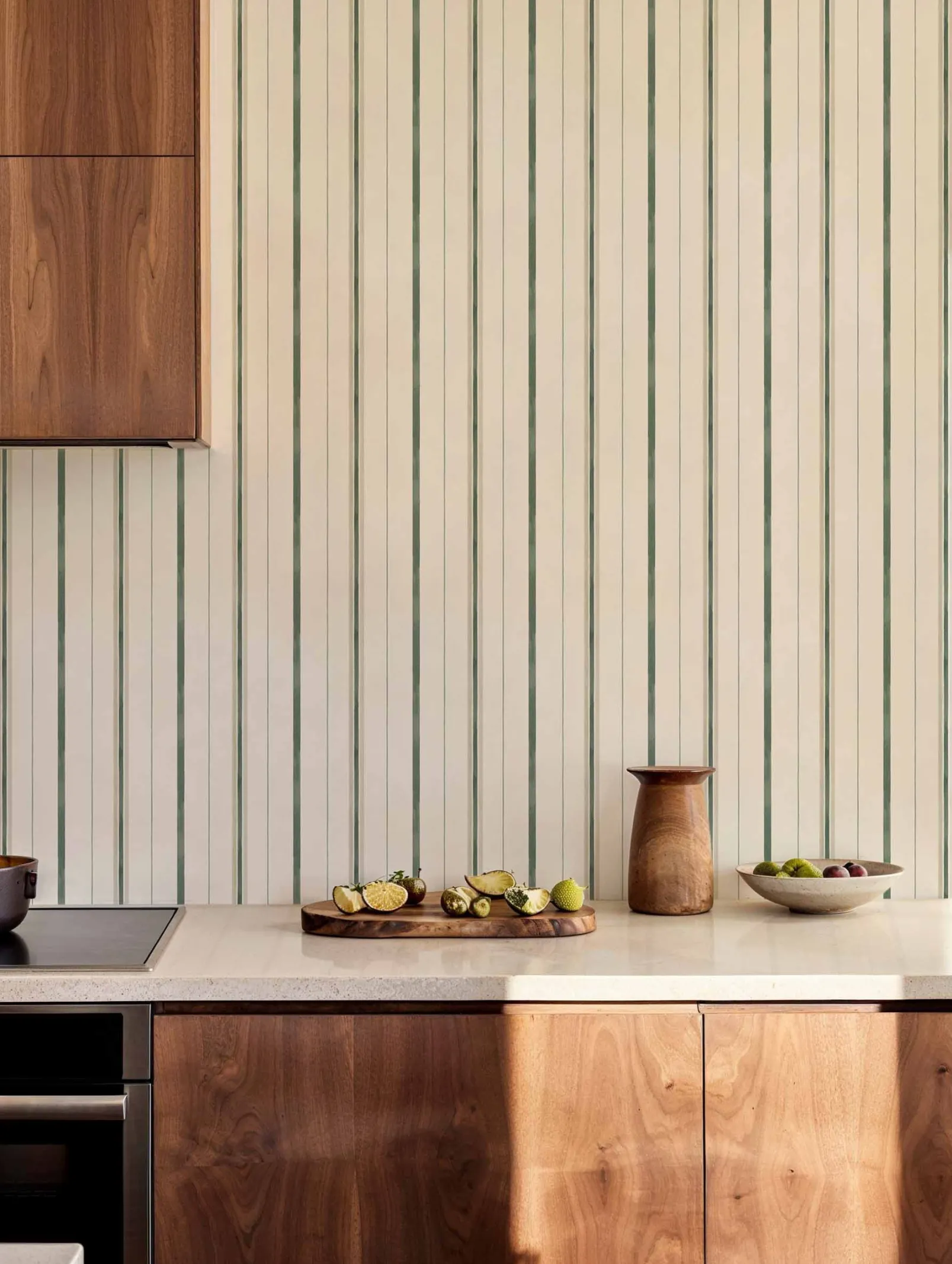 Rolling-Stripes Mint de Coordonné es un diseño de rayas en verde de la colección Cotswolds. Rayas suaves y fluidas que descienden en un viaje sin fin a lo largo de la tela.