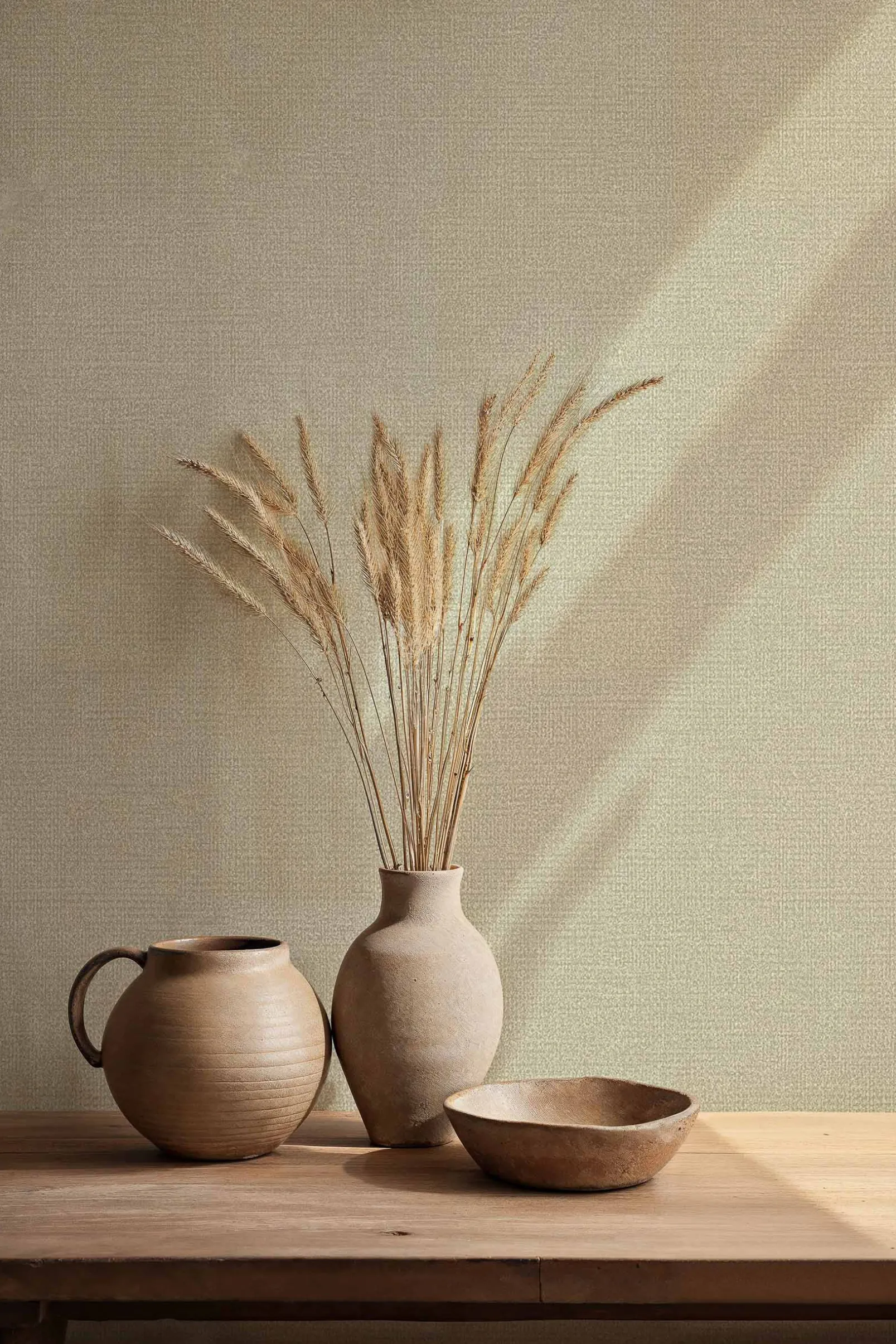 Sastre 27 de Coordonné es un diseño liso en verde de la colección Tactus. Bucles de hilos de lana y algodón.
