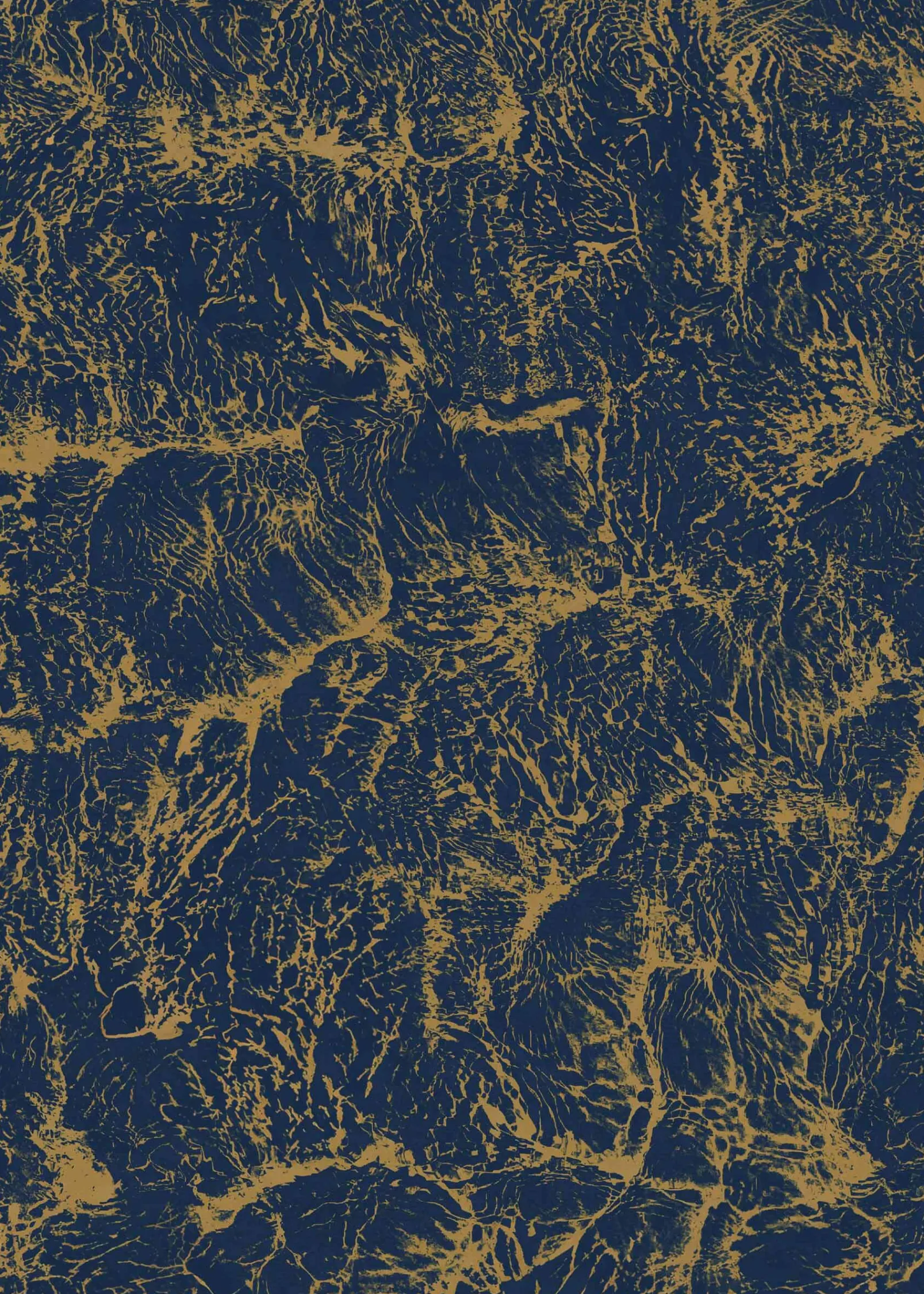 Sepia Lapislazuli de Coordonné es un papel pintado inspirado en la textura en tonos azul marino. Este motivo guarda paralelismos con los grabados en plancha de cobre del siglo XVIII.