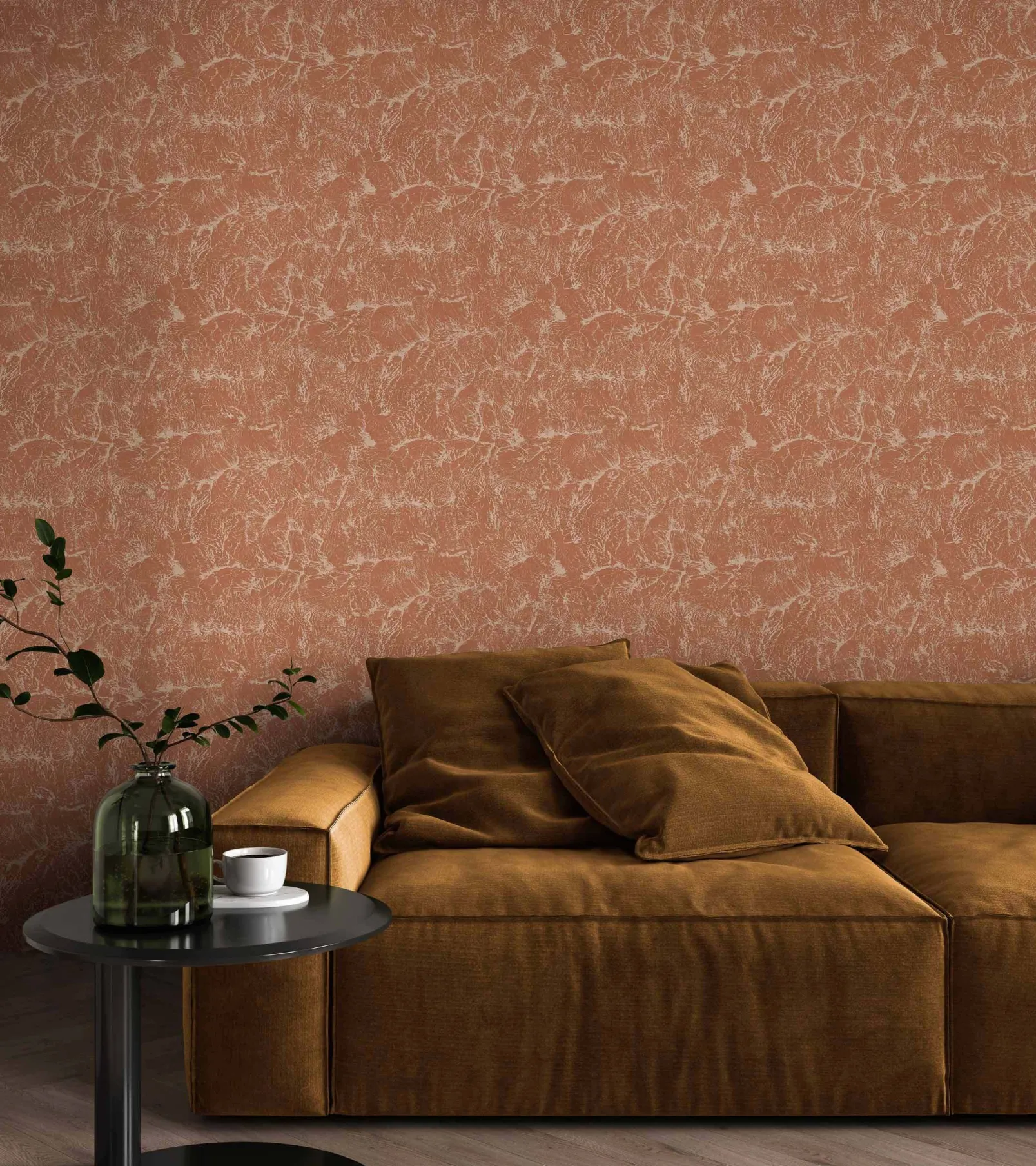 Sepia Rose de Coordonné es un papel pintado inspirado en la textura en tonos rosa/lila. Este motivo guarda paralelismos con las planchas de cobre del siglo XVIII.