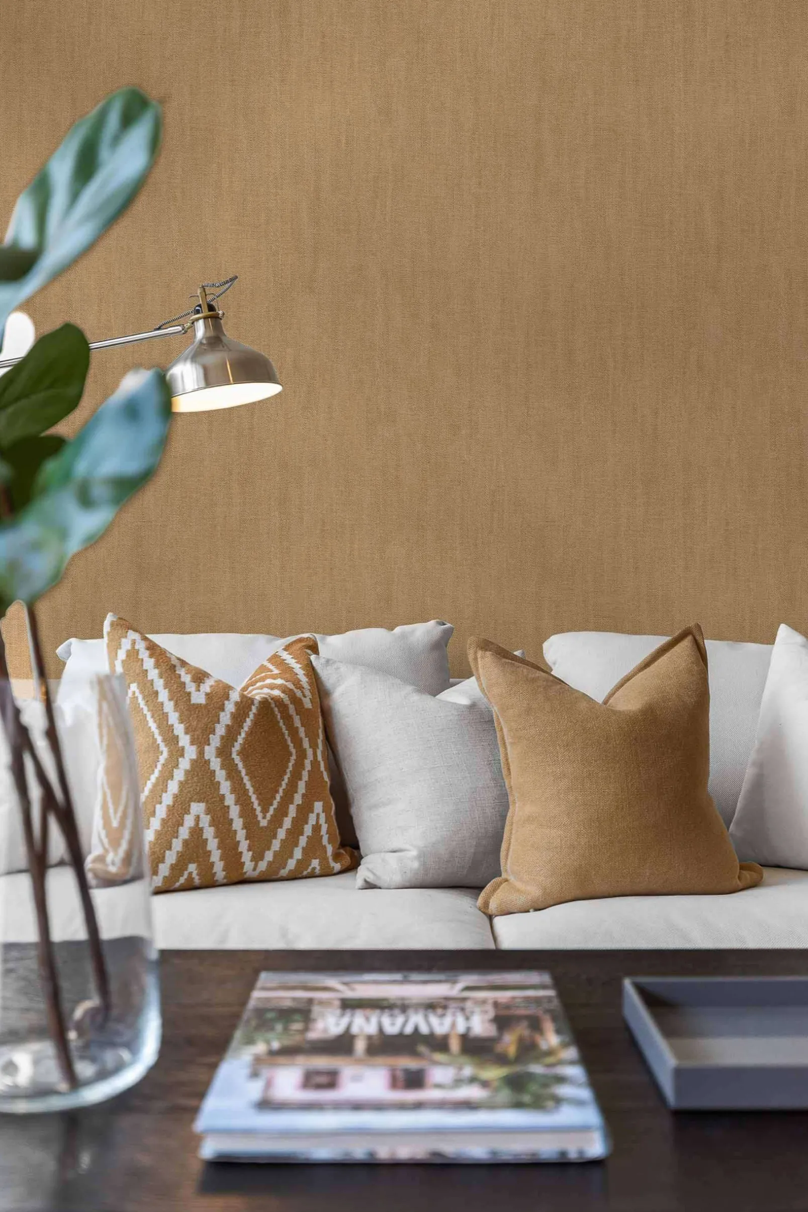 El papel pintado Sergé Ocre de Coordonné es un diseño de texturas en tonos amarillo/naranja de la colección Palette. Cálido siena y ámbar. Elegante trama textil de una sofisticada sarga.