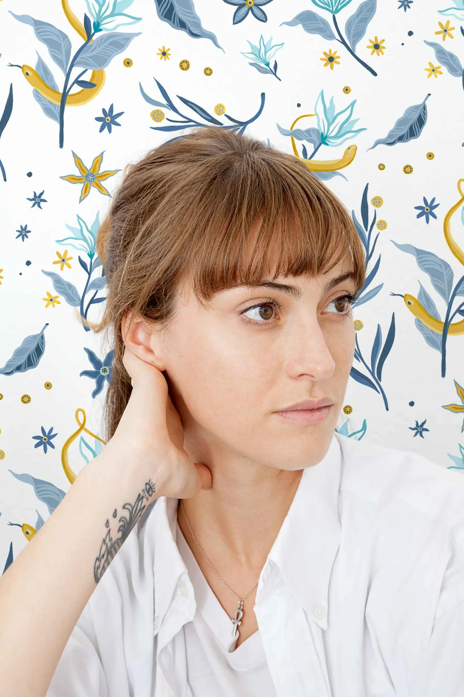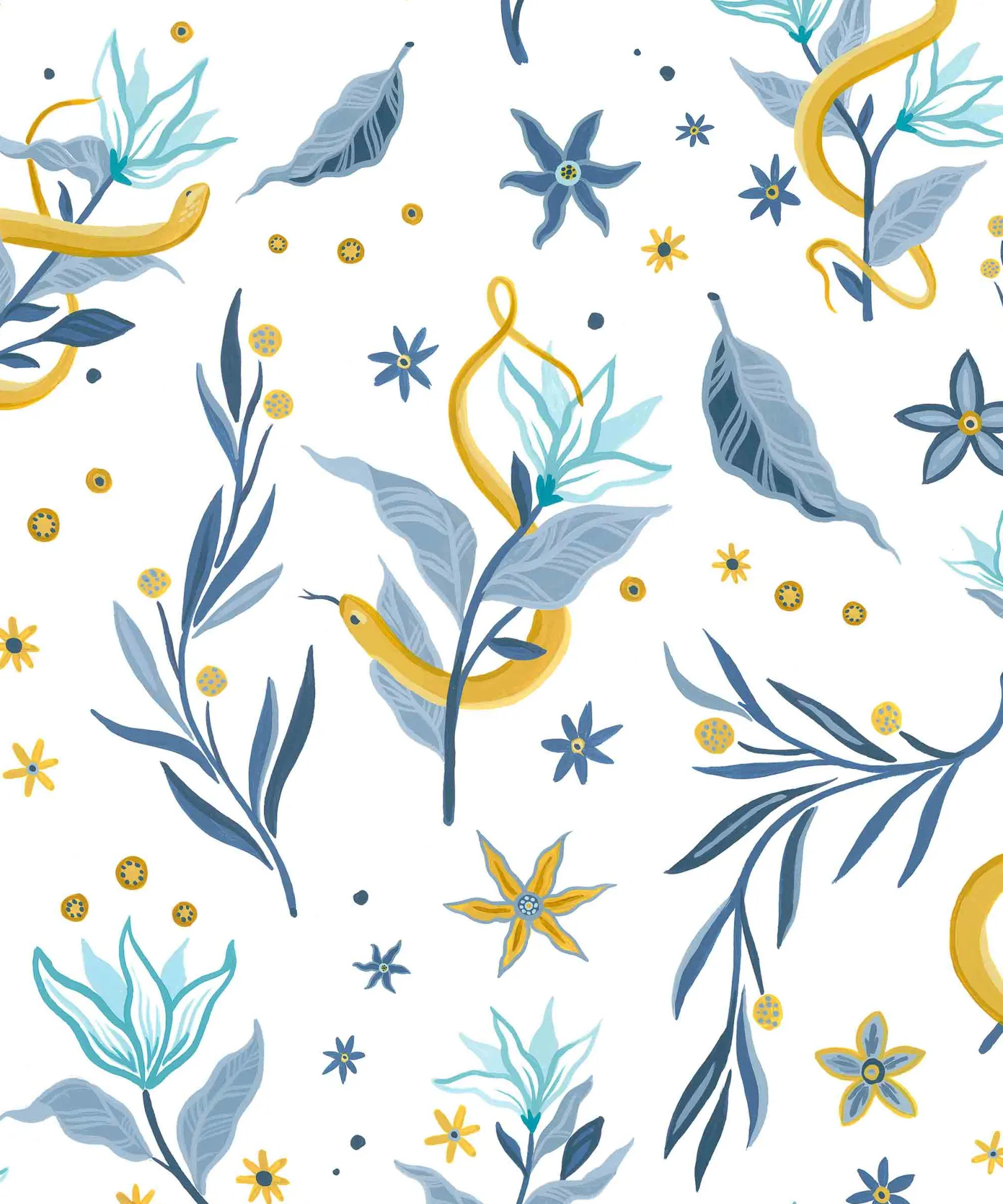Papel pintado de Serpientes y Flores Light Coordonné de la colección 40 aniversario con diseño de animales en tonos blancos/grises.