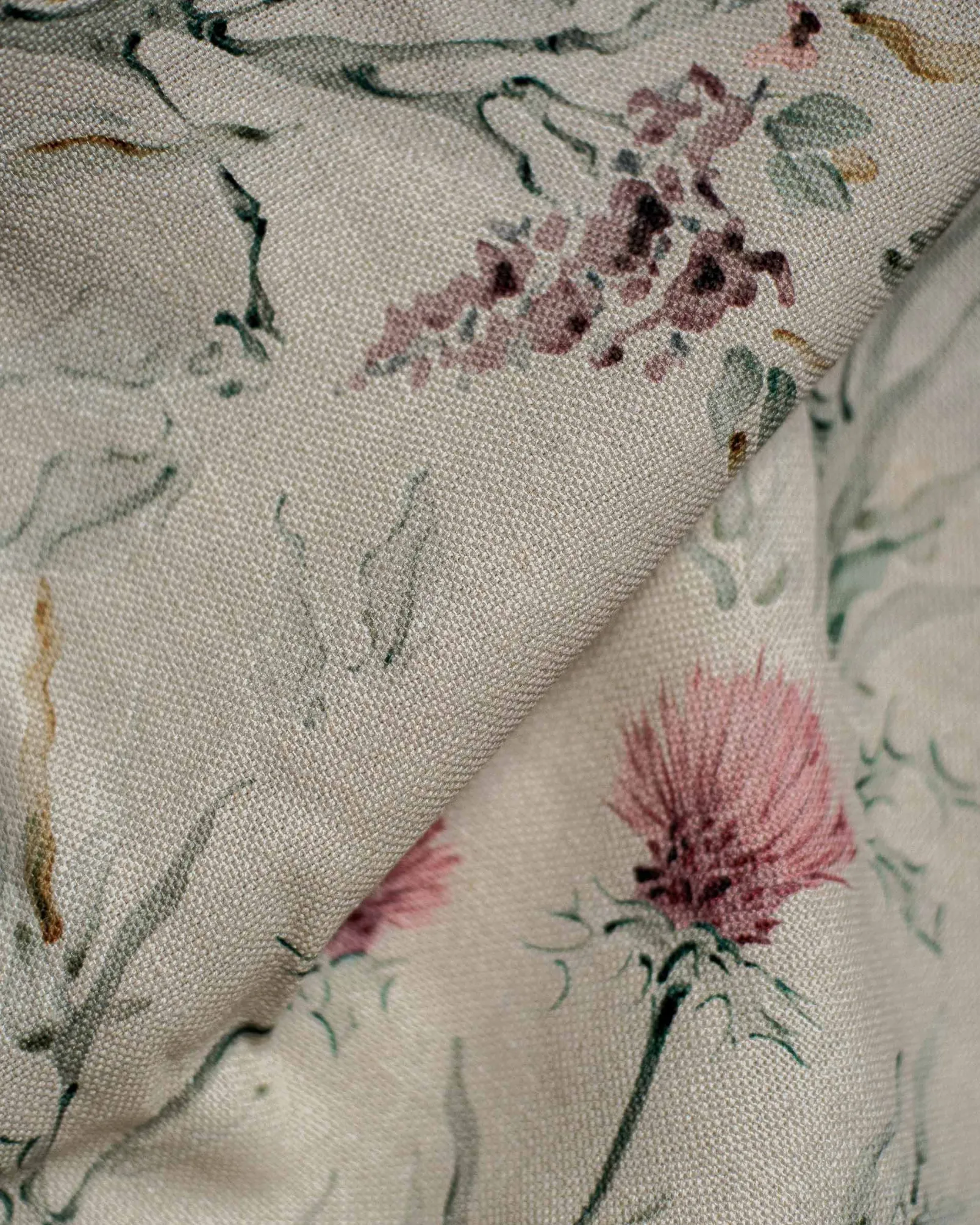 La tela Silvestre Papiro de Coordonné es un diseño de inspiración floral en color beige de la colección Palacio de Cristal Fabrics.