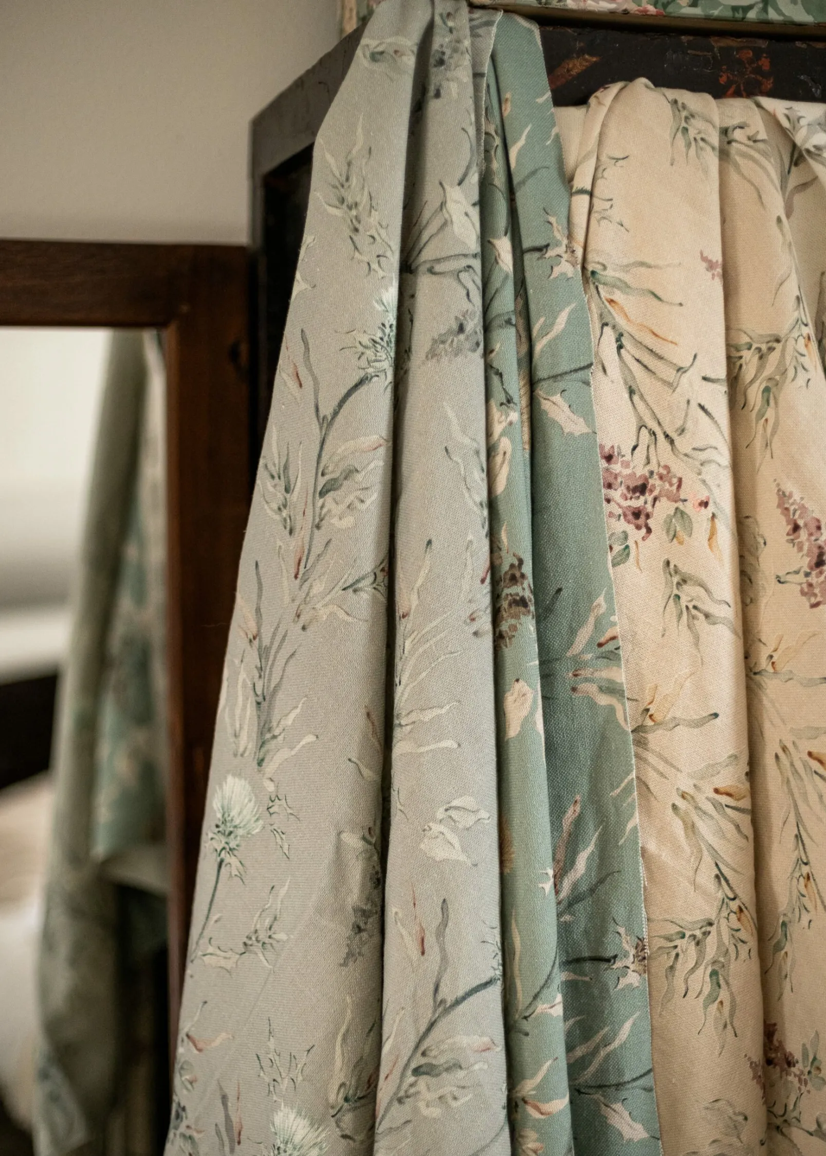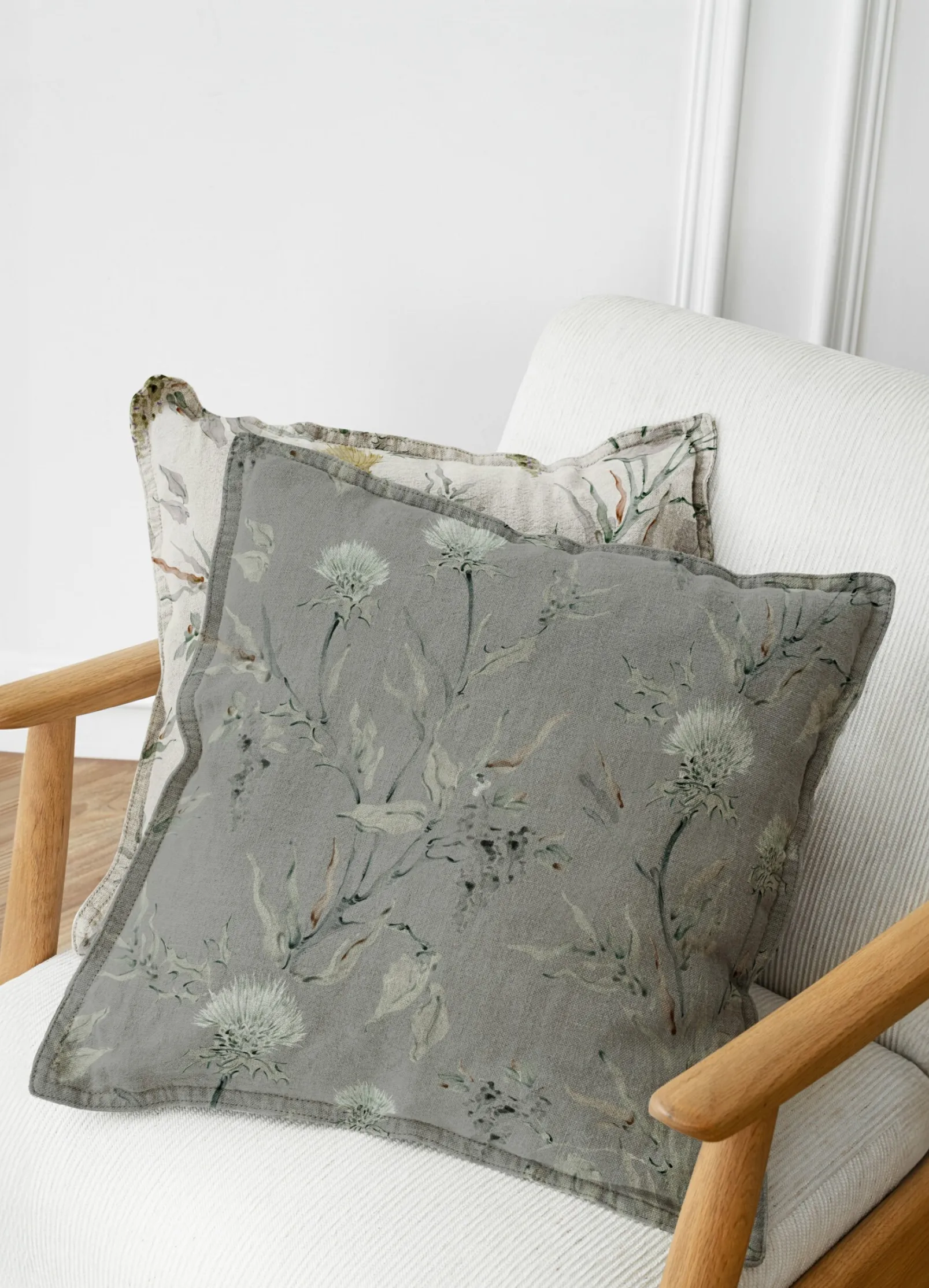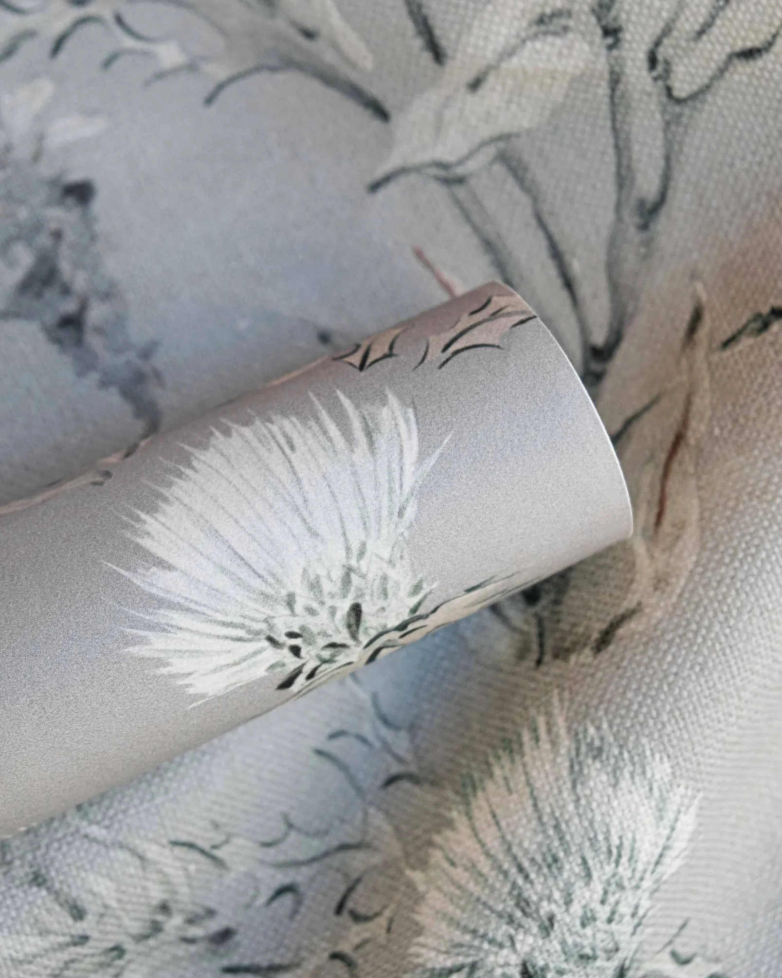 La tela Silvestre Plata de Coordonné es un diseño de inspiración floral en blanco/gris de la colección Palacio de Cristal Fabrics.