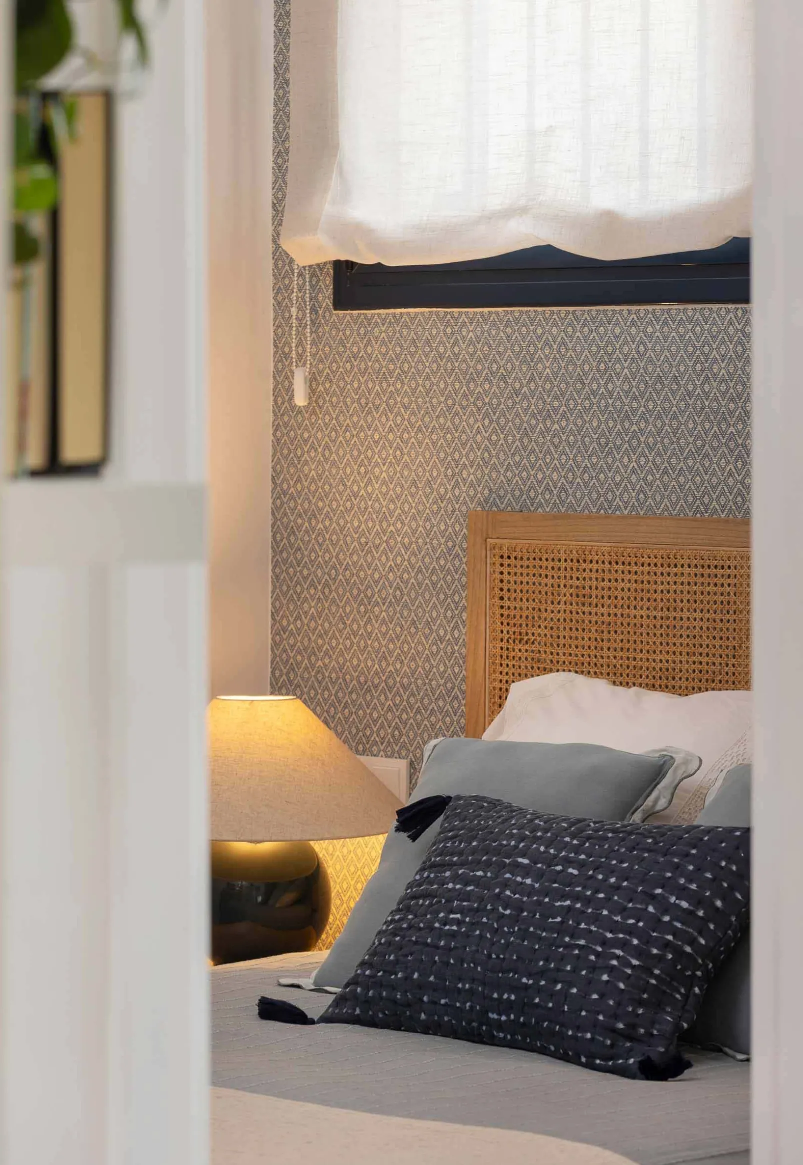 La experiencia de una textura natural, tejida en forma de diamantes.