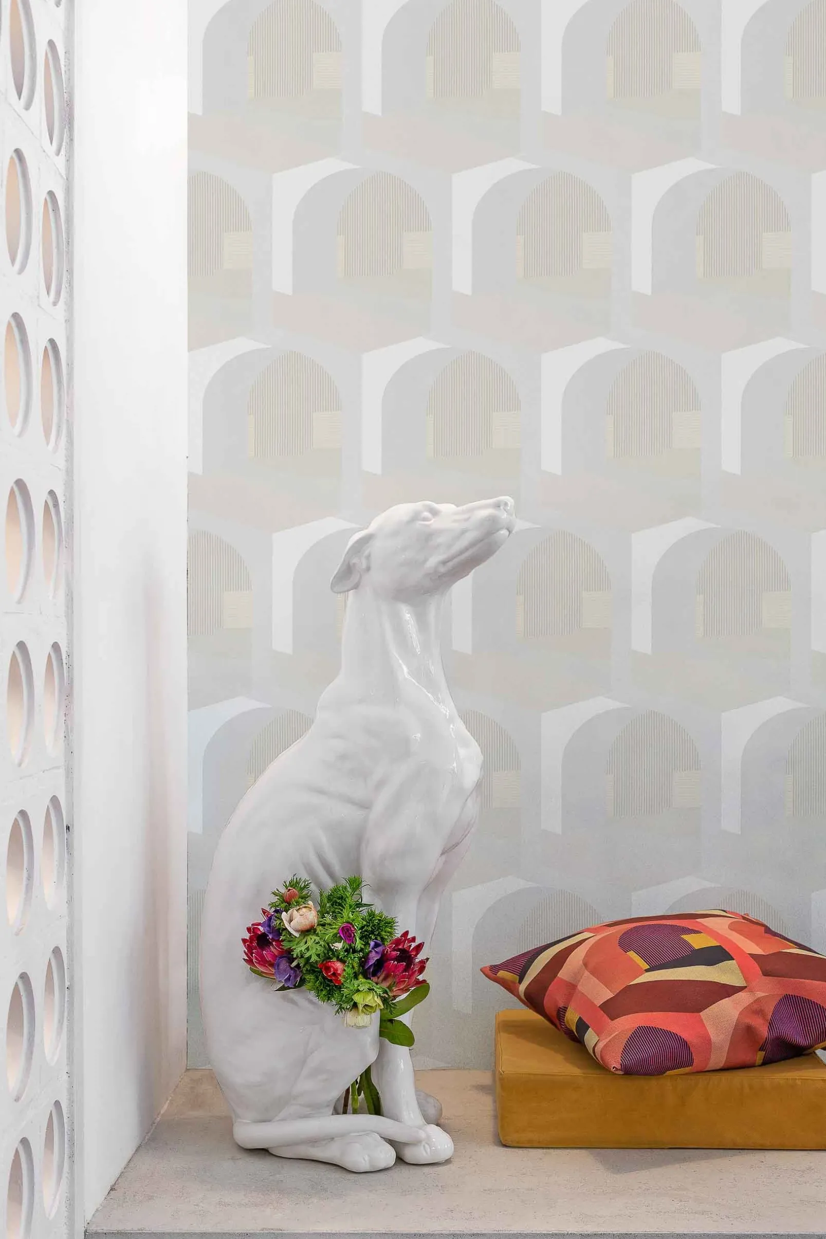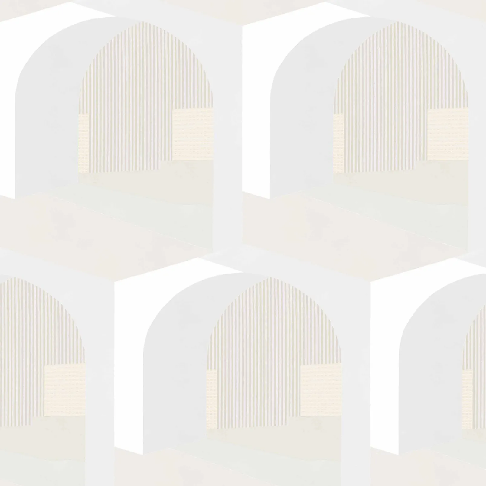 El papel pintado Soller Ivory de Coordonné es un diseño geométrico en tonos blanco/gris de la colección Mallorca.