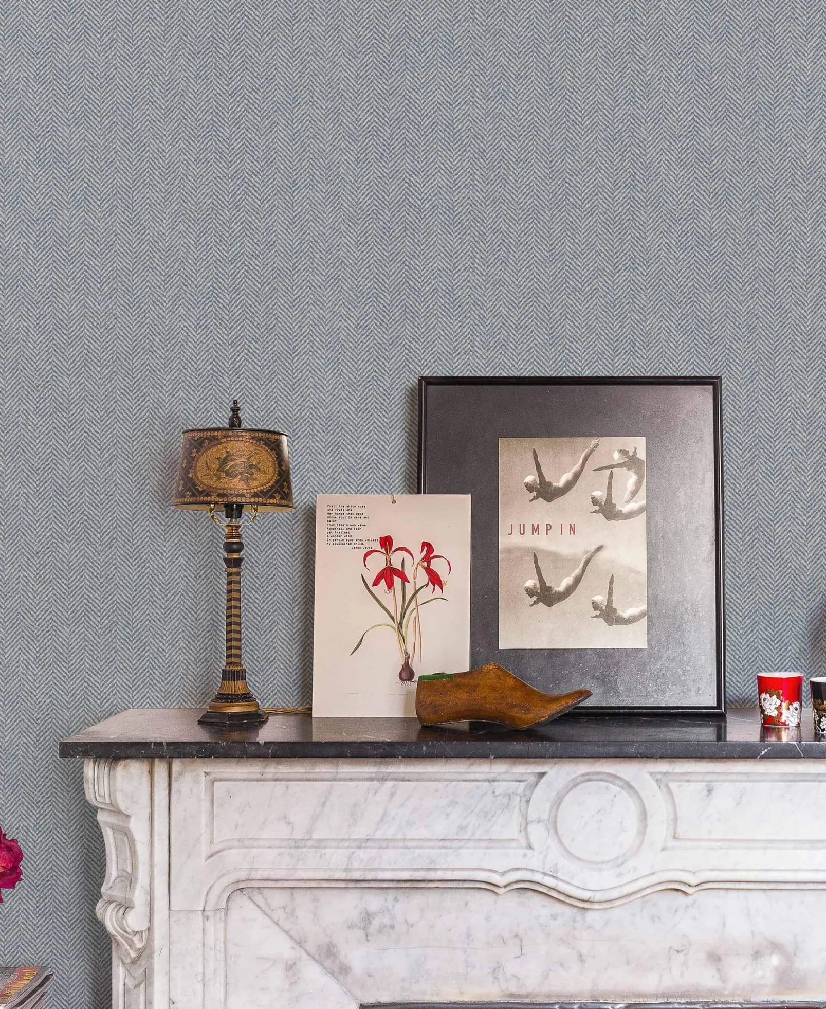 Spike Blue de Coordonné es un papel pintado inspirado en la textura en color Azul/Azul Marino. El refinamiento textil de la sastrería victoriana.