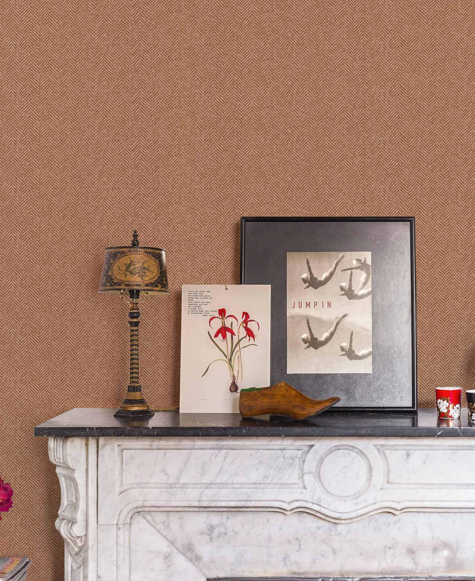 Spike Clay de Coordonné es un papel pintado inspirado en la textura en color Amarillo/Naranja. El refinamiento textil de la sastrería victoriana.