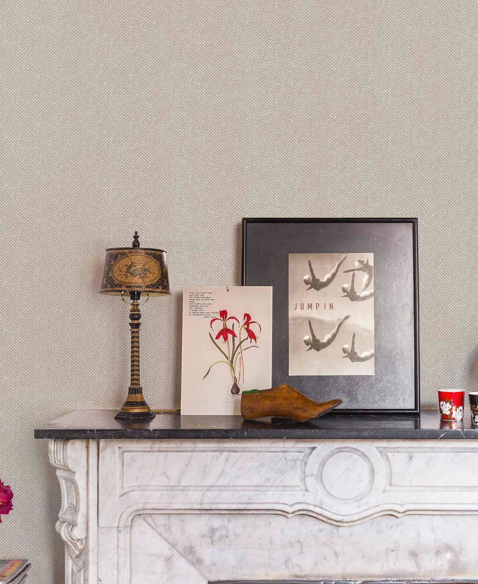 Spike Ecruis de Coordonné es un papel pintado inspirado en la textura en color Beige/Nude . El refinamiento textil de la sastrería victoriana.
