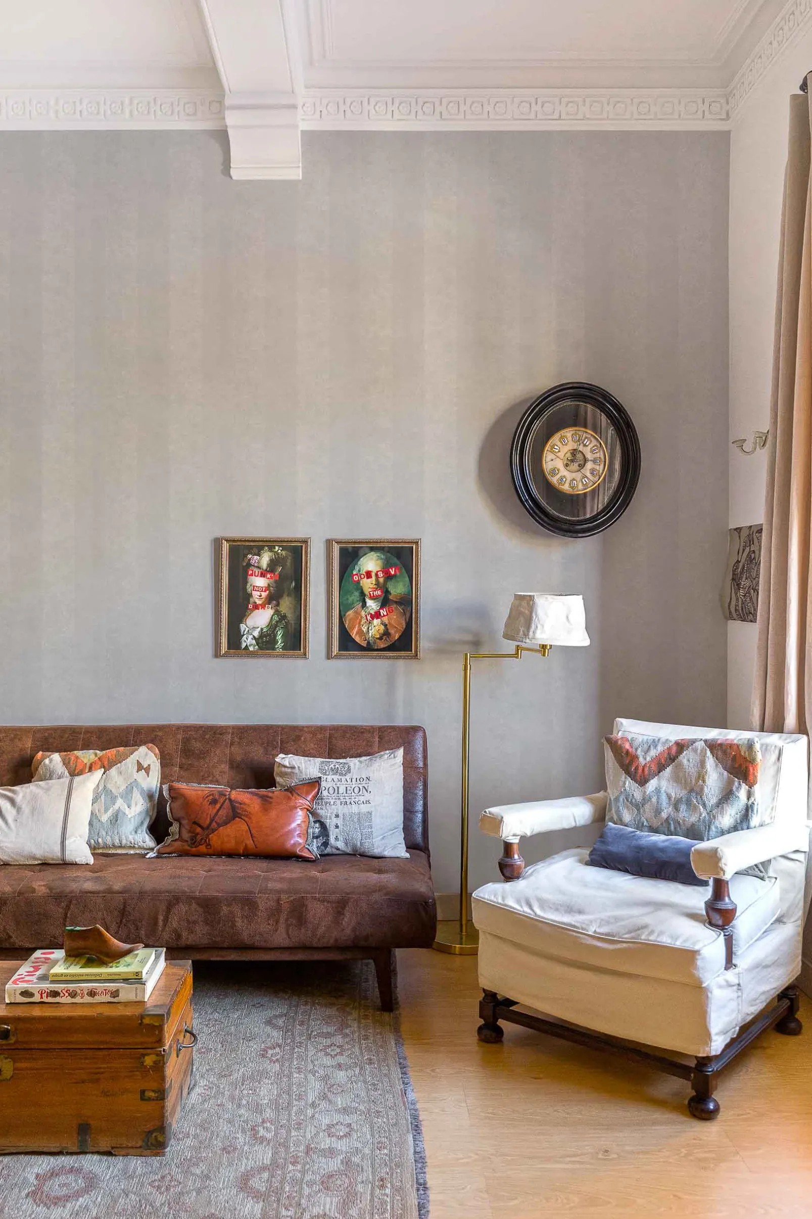El papel pintado Stein Light Grey de Coordonné es un diseño de rayas en tonos blanco/gris de la colección Montmartre.
