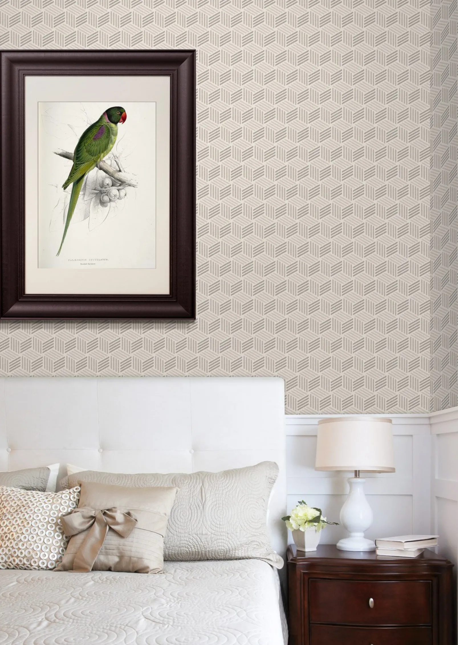 El papel pintado Paja Silver de Coordonné es un diseño Geométrico en tonos Rosa/Lila de la colección Botanika.
