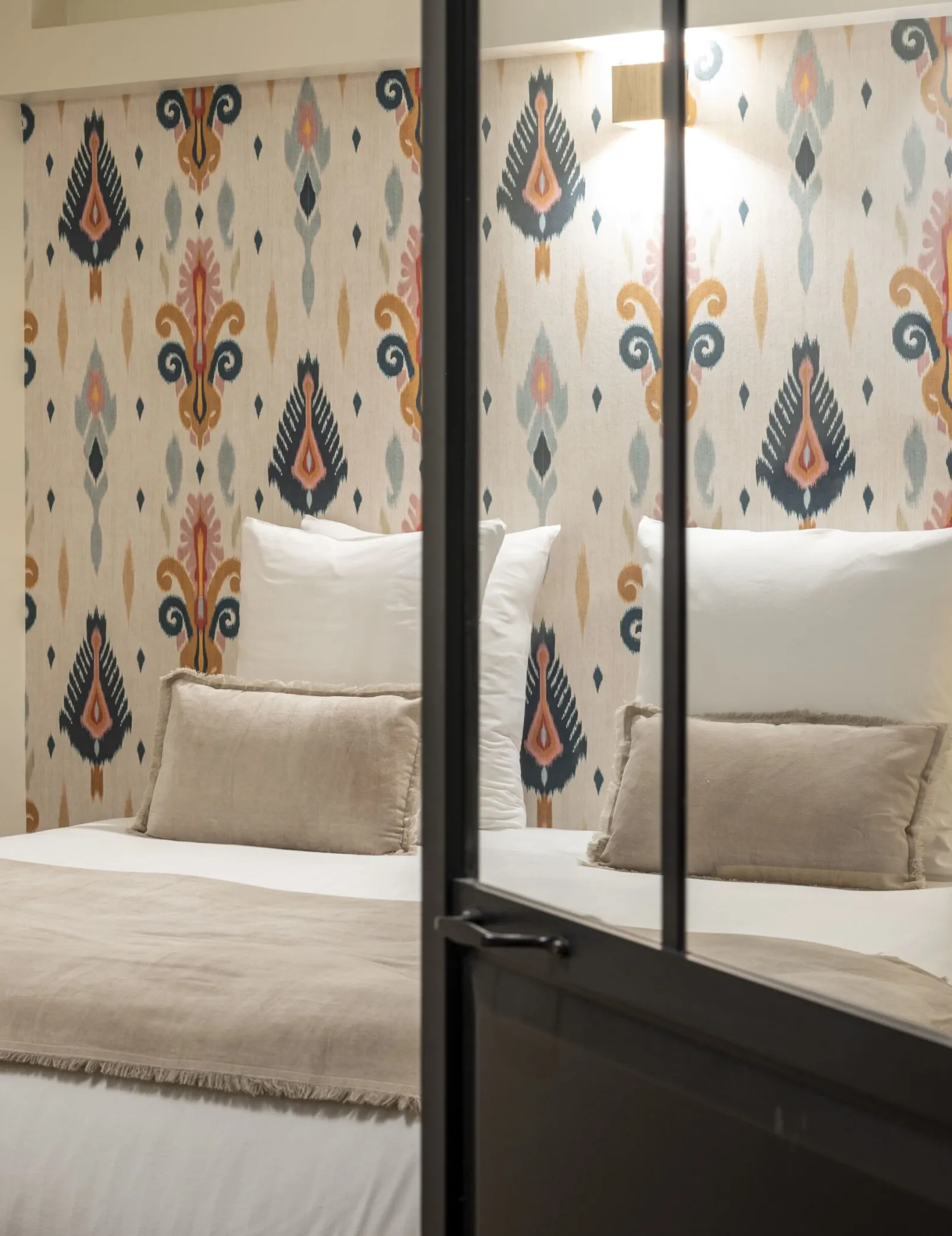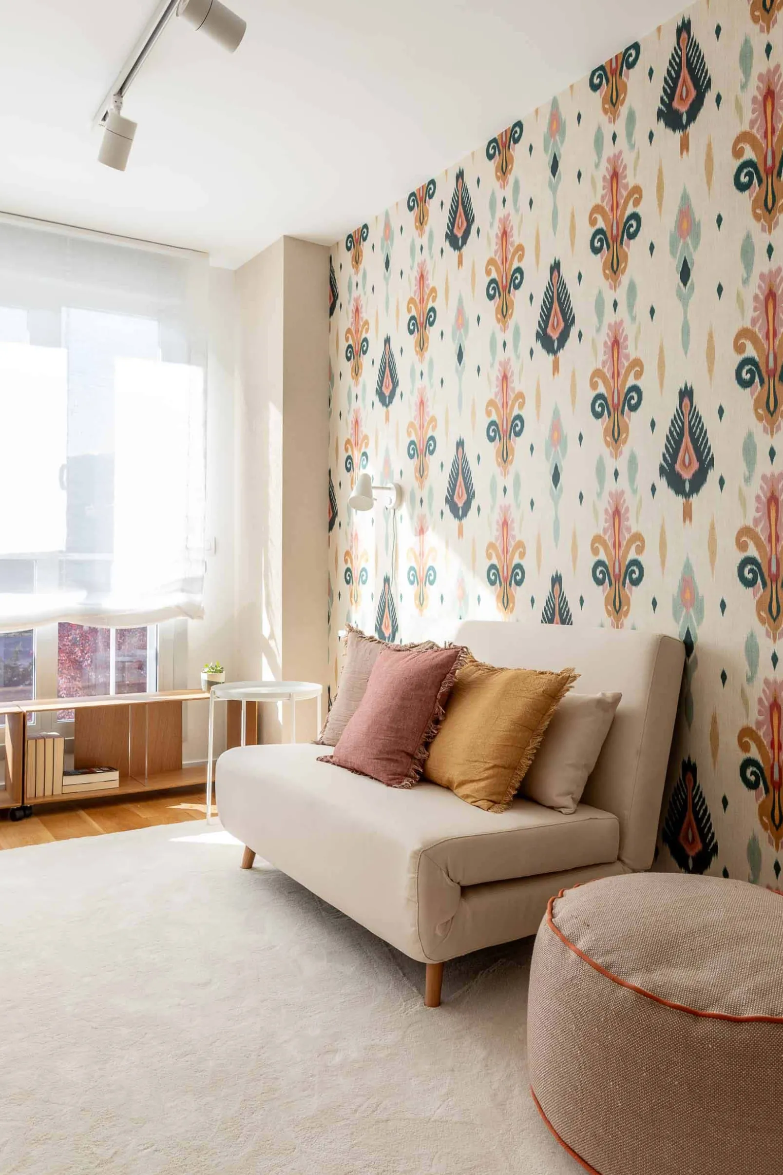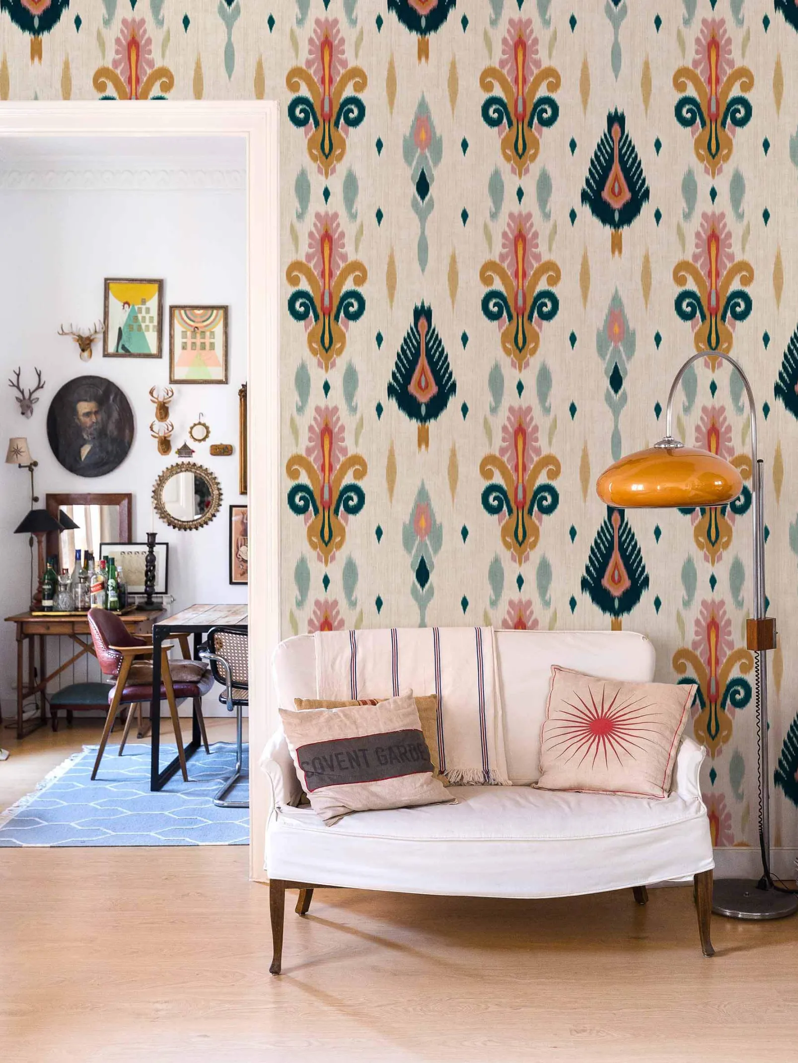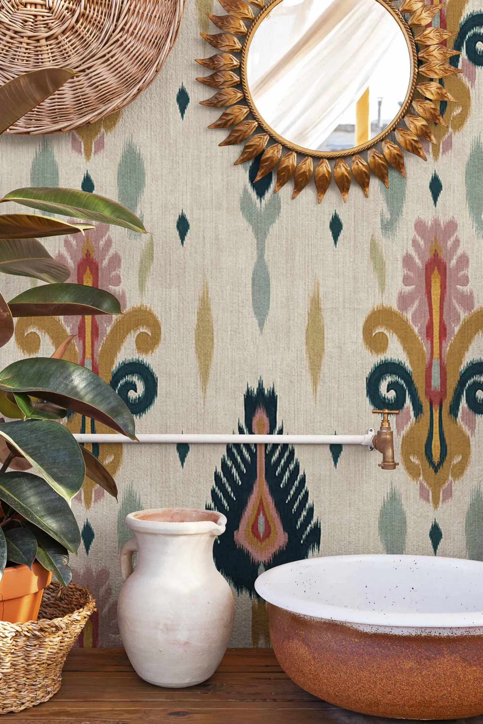 El papel pintado Sumba Cream de Coordonné es un diseño floral en tonos beige/nude . Tejedores de la isla de Sumba que se inspiran en los arrecifes de coral de Indonesia.
