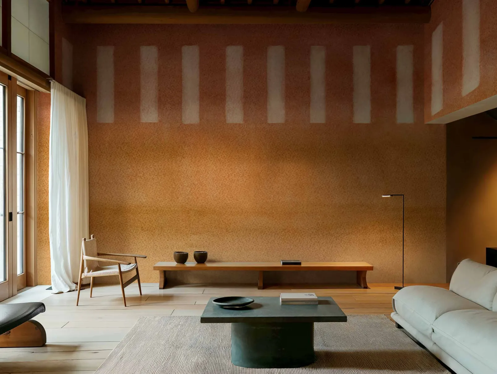 Taki Amber de Coordonné es un diseño geométrico en amarillo/naranja de la colección Shibori. La sonoridad de una pieza musical.
