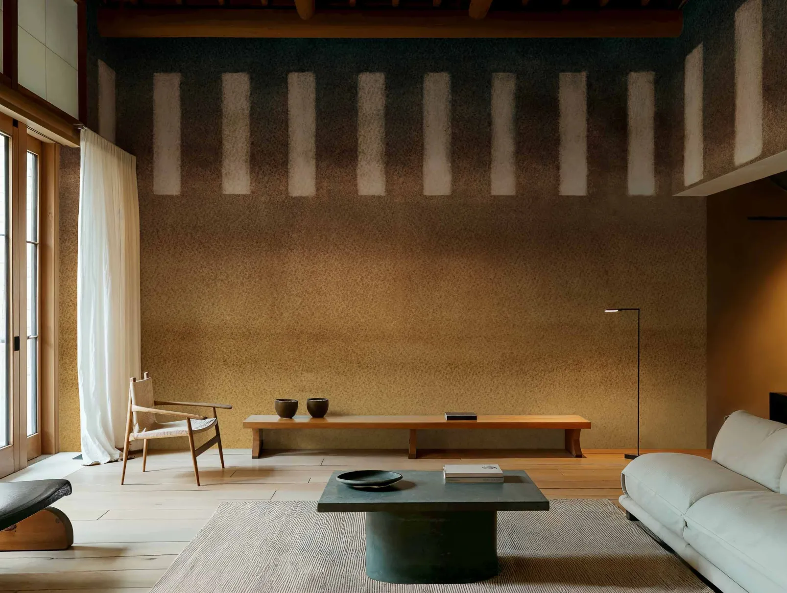 Taki Honey de Coordonné es un diseño geométrico en amarillo/naranja de la colección Shibori. La sonoridad de una pieza musical.
