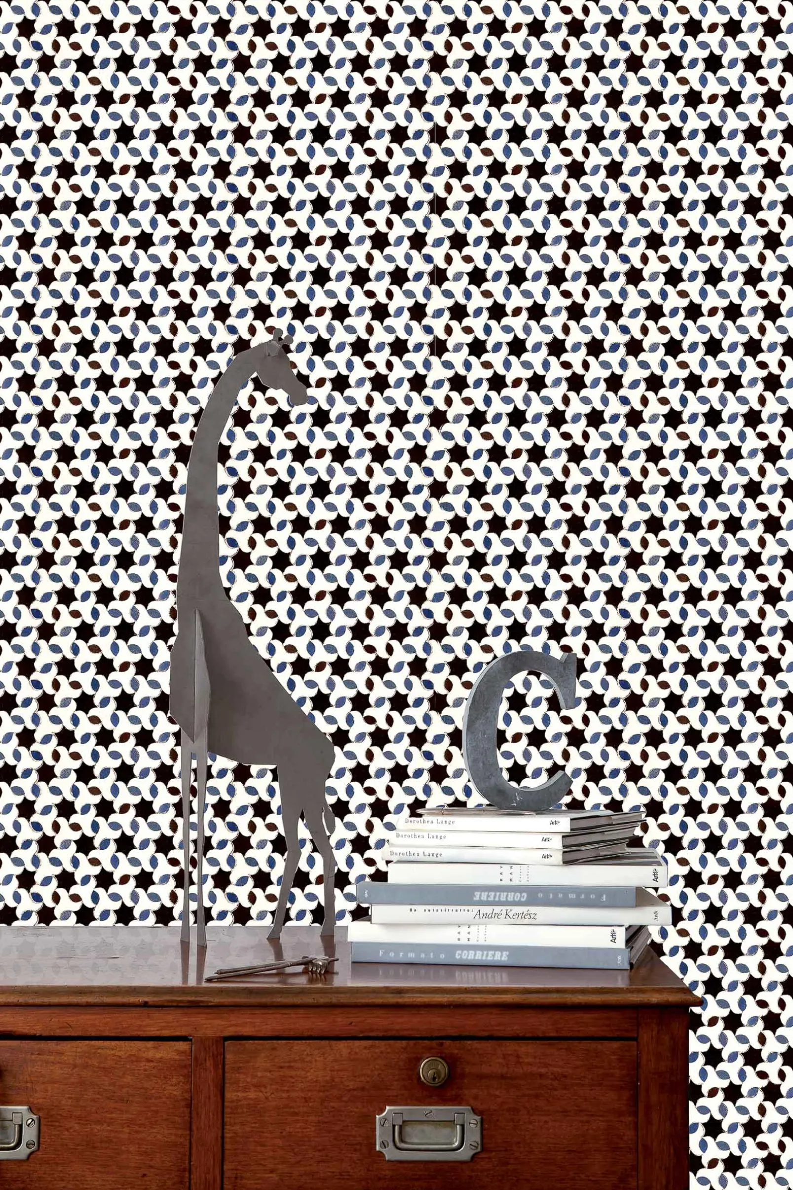 El papel pintado Tarifa de Coordonné es un diseño geométrico en tonos azules/azules de la colección Tiles.