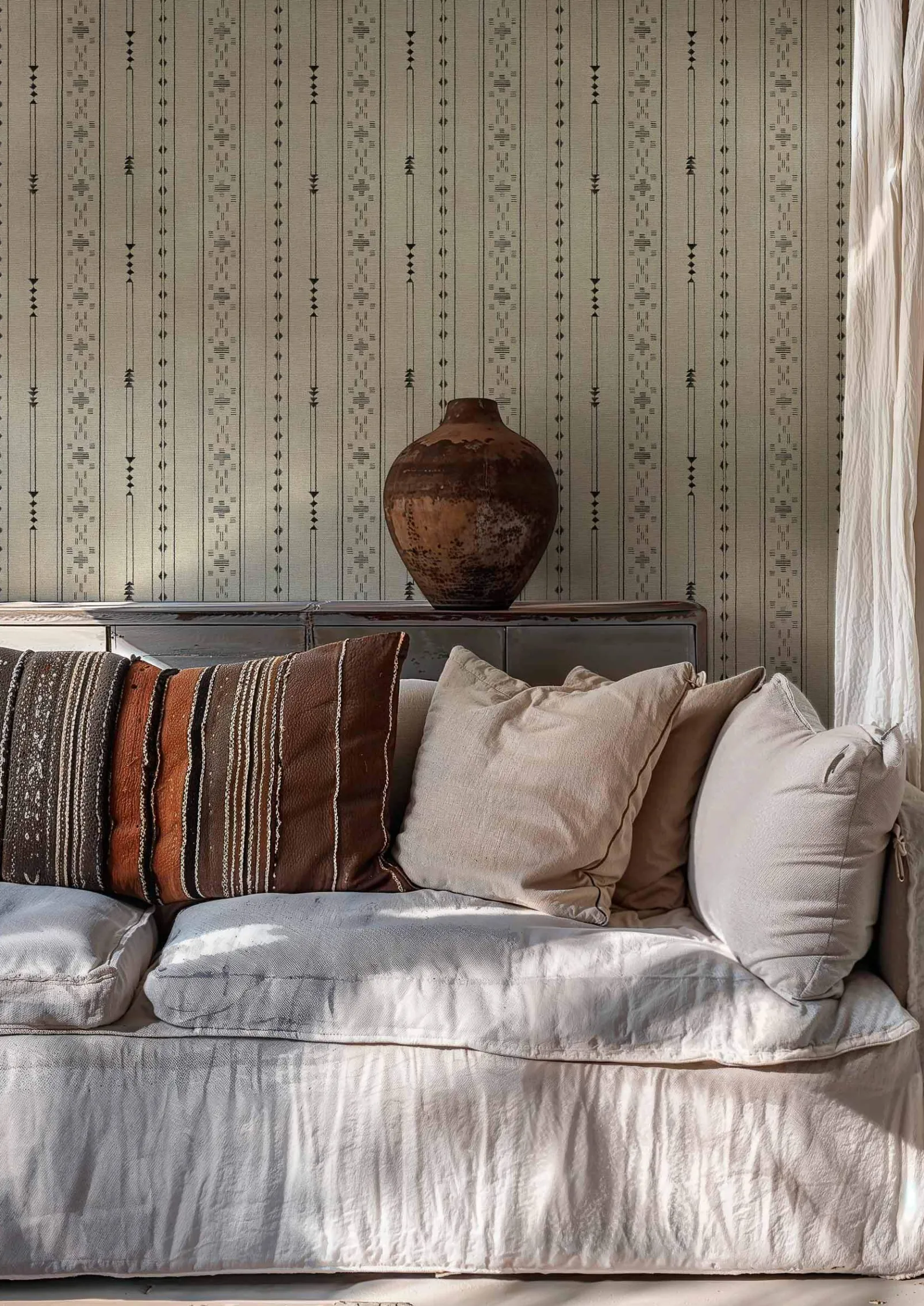 Tifinagh Script Bone de Coordonne es un papel pintado inspirado en la textura en tonos Blanco/Gris de la colección Bereber. Interpretación abstracta de uno de los alfabetos más antiguos que aún existen, el bereber.