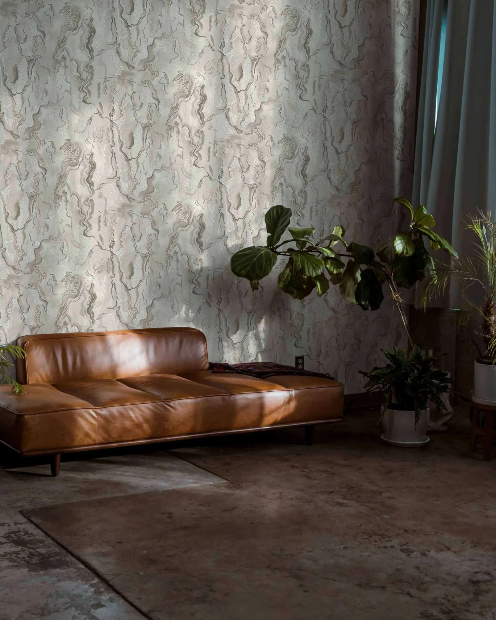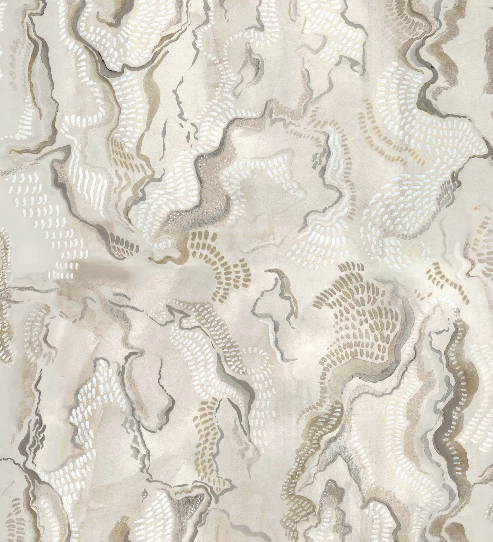 El papel pintado Timeless stones Pearl de Coordonné es un diseño de texturas en tonos blanco/gris de la colección Central Saint Martins – Rest Time. Algo tan mecánico como recoger piedras en la naturaleza me ayuda a conectar con lo orgánico y conmigo misma.