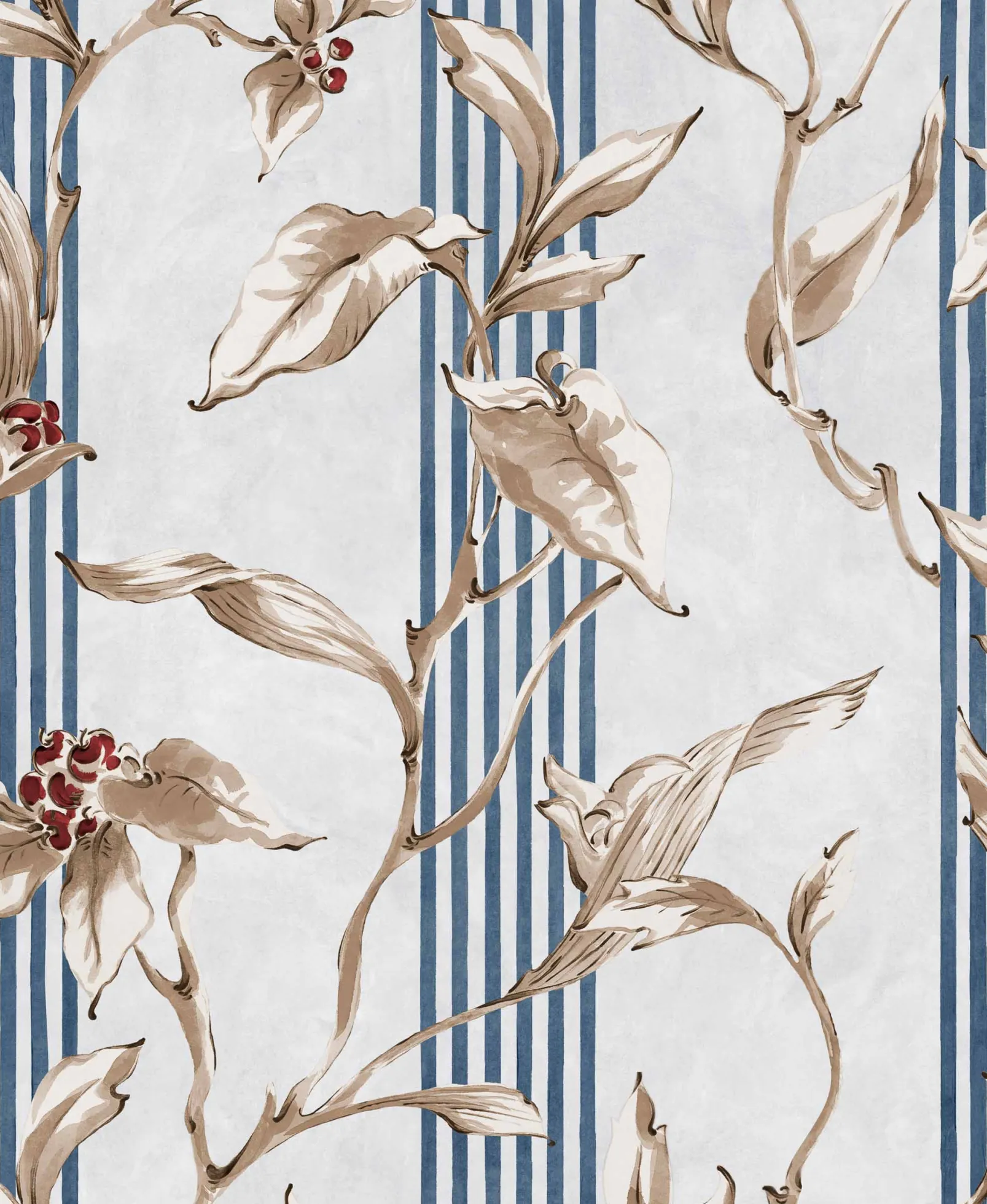 Trepadora Avio de Coordonn es un papel pintado inspirado en texturas en tonos azules/azules marinos. Ágil trepadora de guirnaldas que buscan sin miedo la poderosa luz del sol.